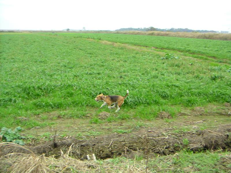 河原からの帰り道にある牧草畑を全力疾走するきゃら.