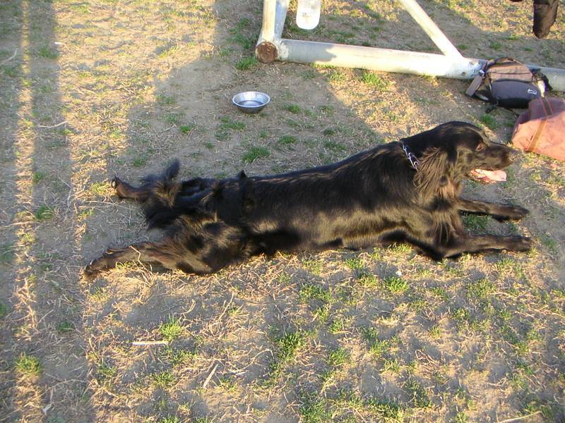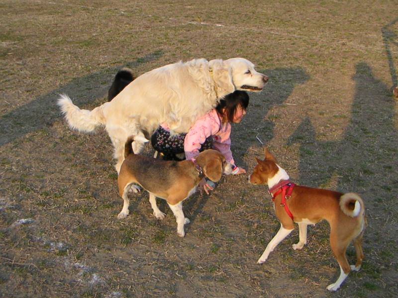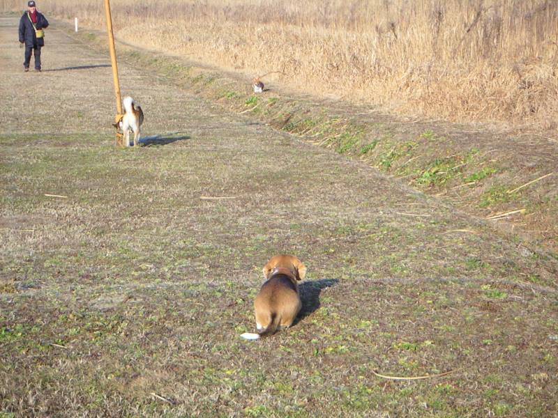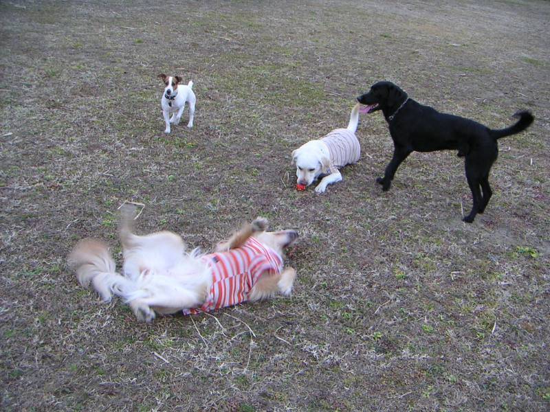 キャッチボール大好きグループの皆さん。ちょいと小休止。オリーブさんは背中が痒いのかな? |