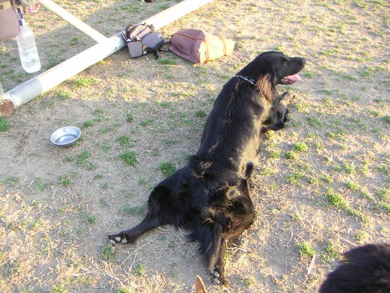 遊び疲れたエリオス君。思わず冷却のポーズ? |
