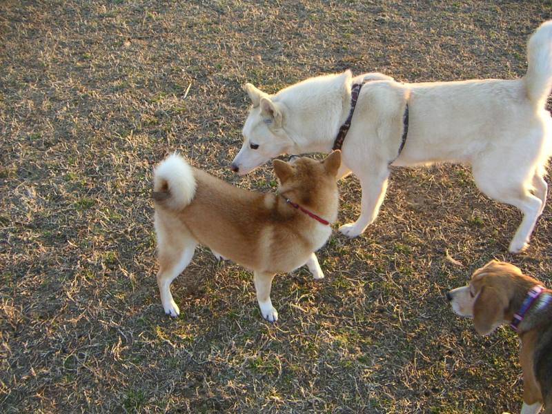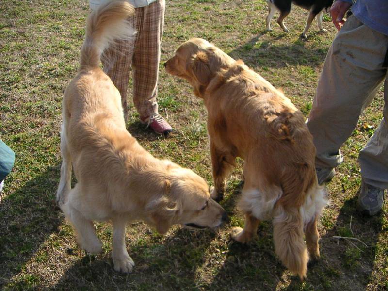 怖いもの知らずのムーさん。ミズキ兄貴が怒っているのもお構いなしに、クンクン。この後、悲劇が...(汗) |