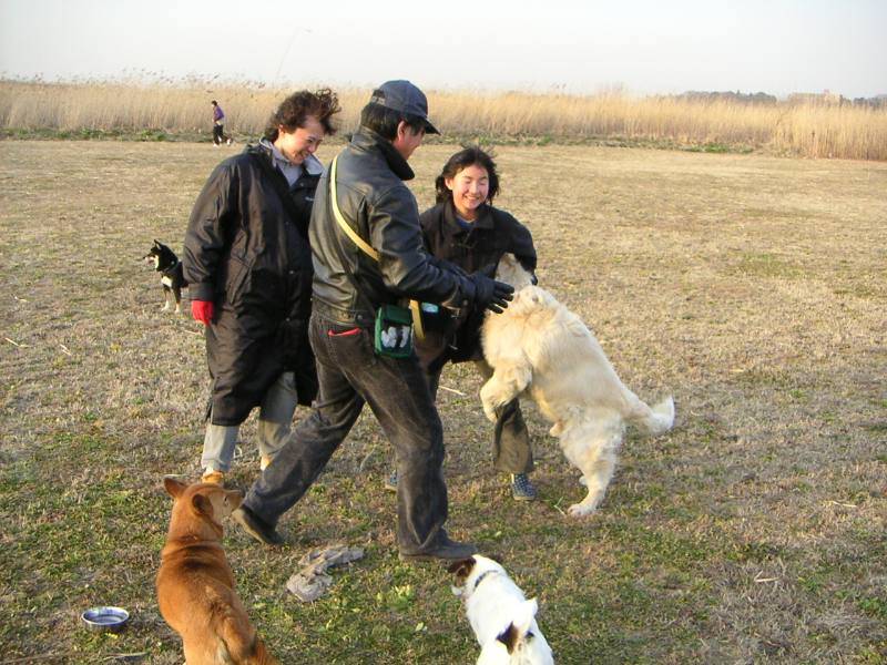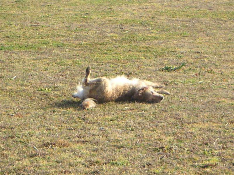 オリーブさん登場。でも早速グランドでゴロンゴロンしてました。『背中がかい〜の』(<オリーブさん談?) |