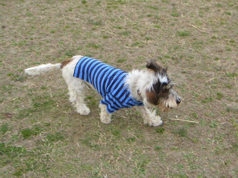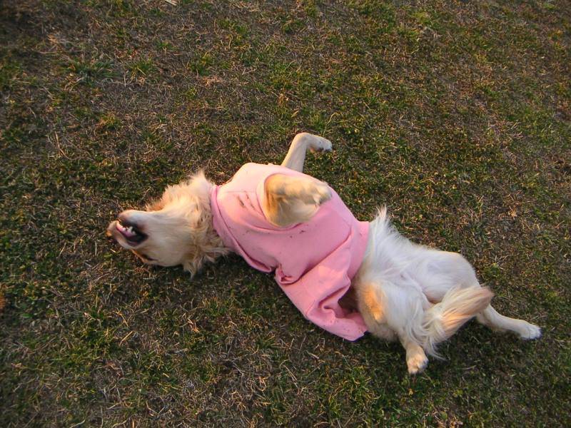 オリーブさんおニューの服で登場。しかし、早速例の行動で汚れてしまいました(汗) |