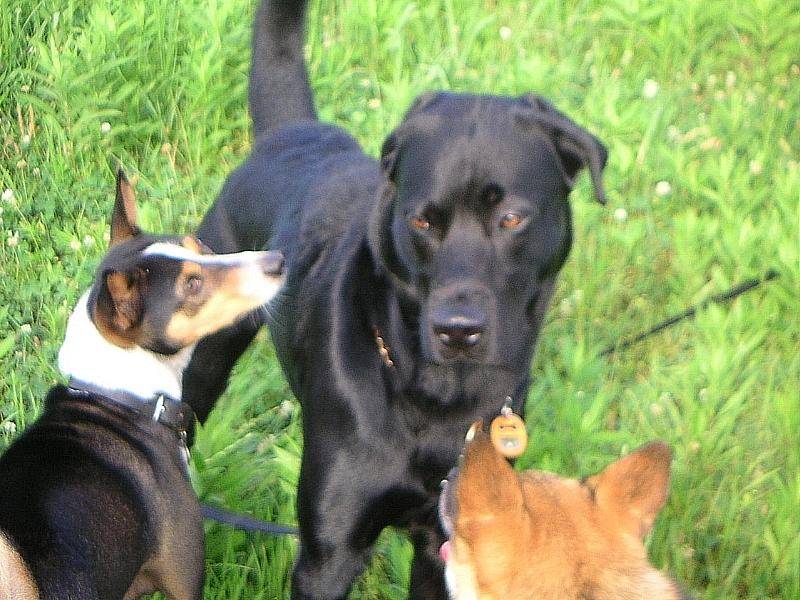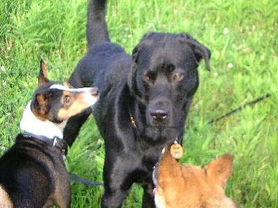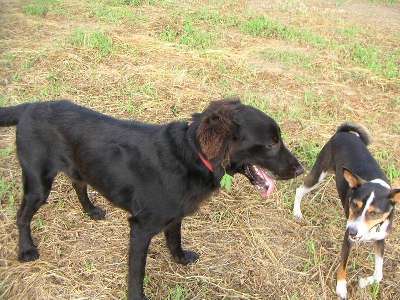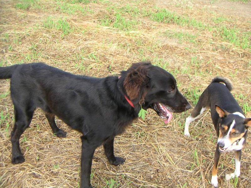 フラットコーテッドのラッシュ君。耳についた葉っぱのイアリングがチャームポイント?