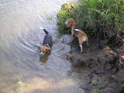 暑さのせいか、ついに麦ちゃんが川デビュー!?