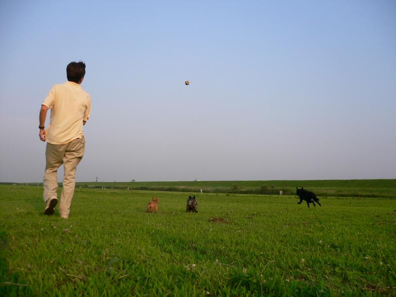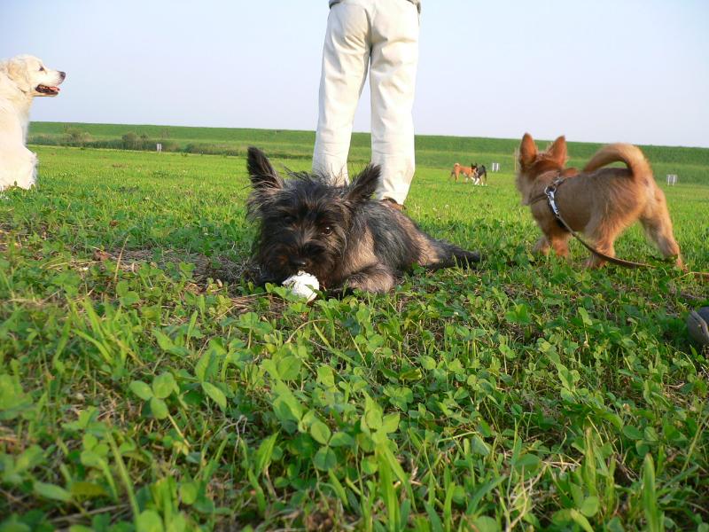 ゴルフボールと奮闘中のガッツァ君 |