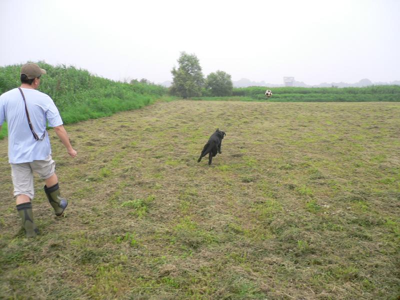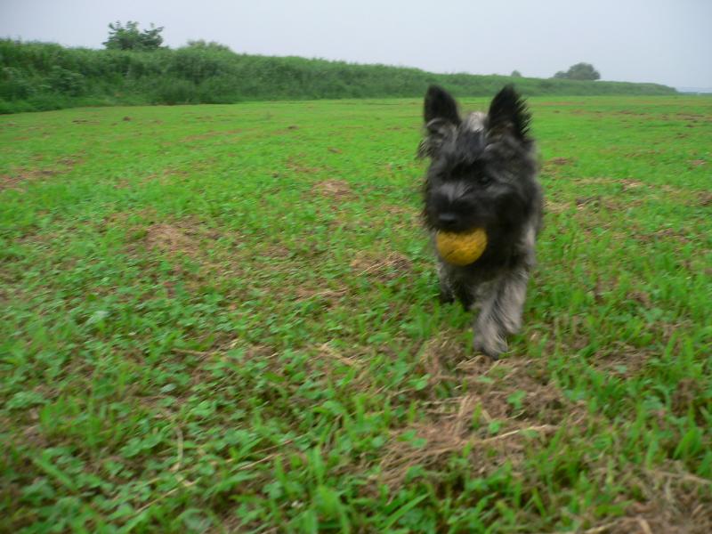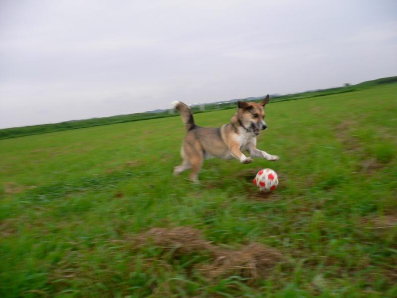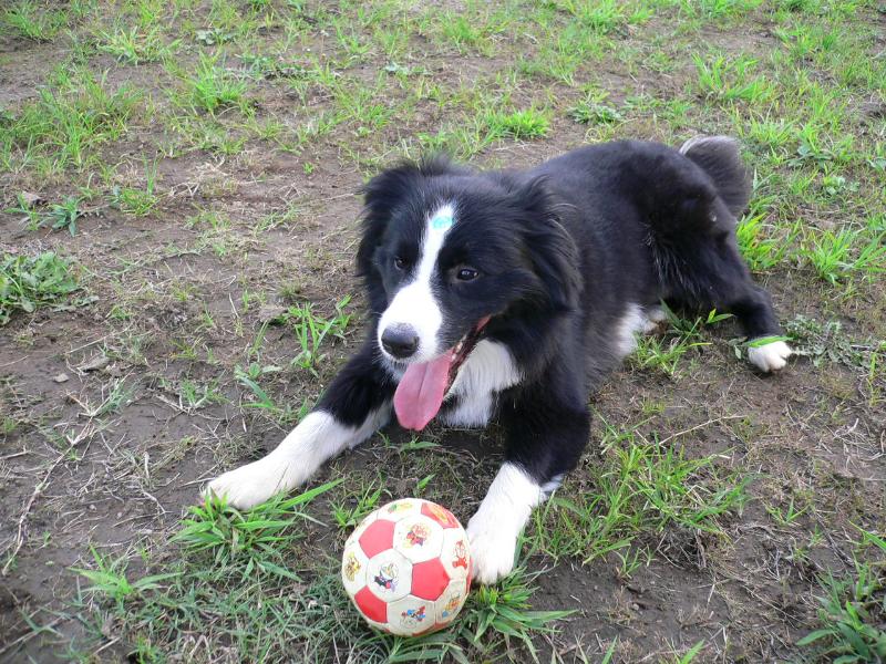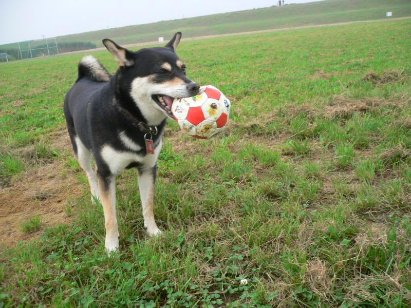 サッカーボールにまっしぐら、いつも元気なルース君 |