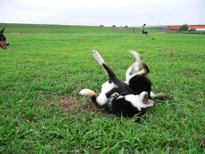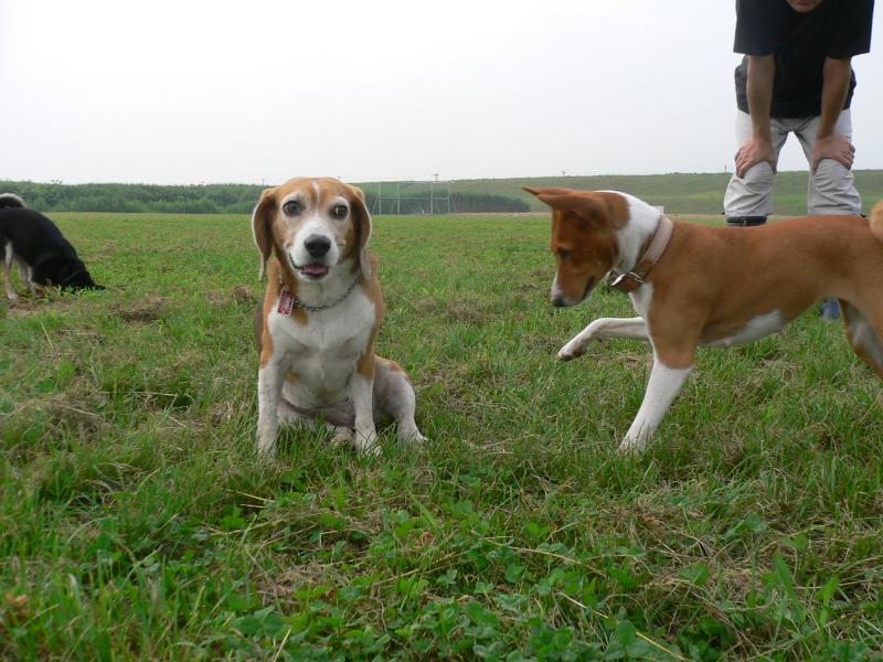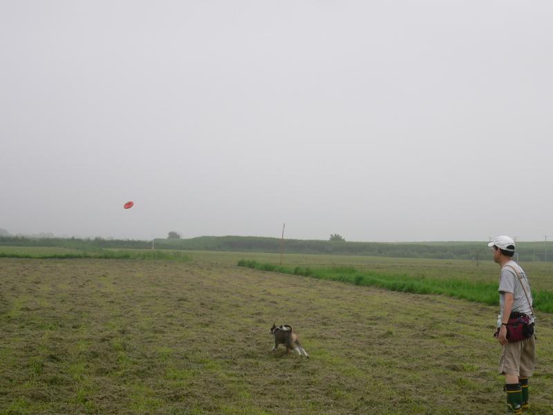 こっちはフリスビーにまっしぐらのパル君 |