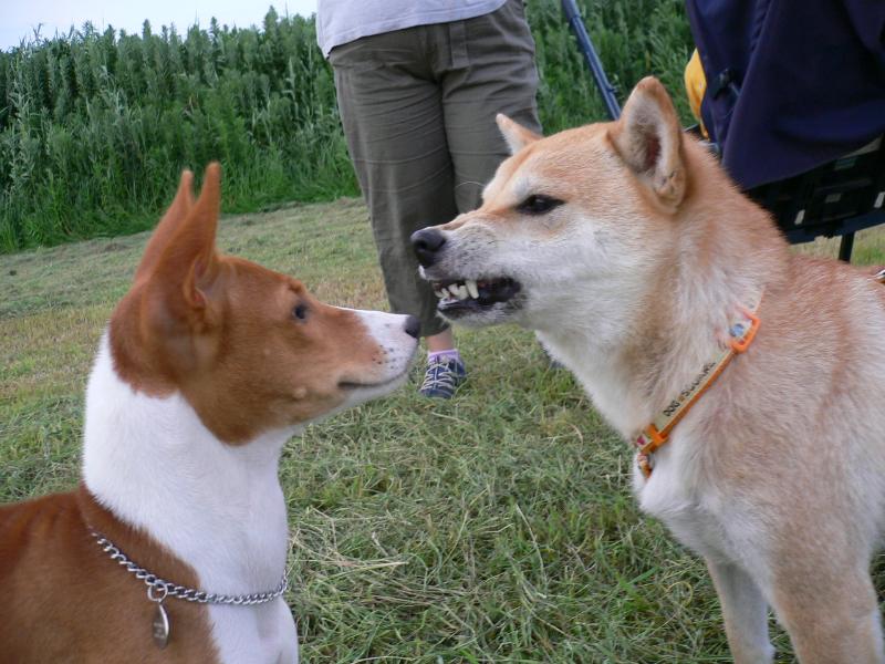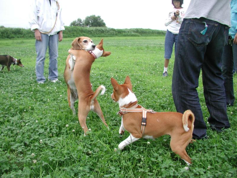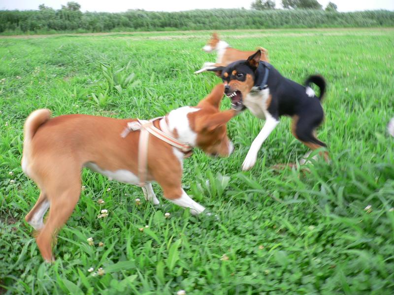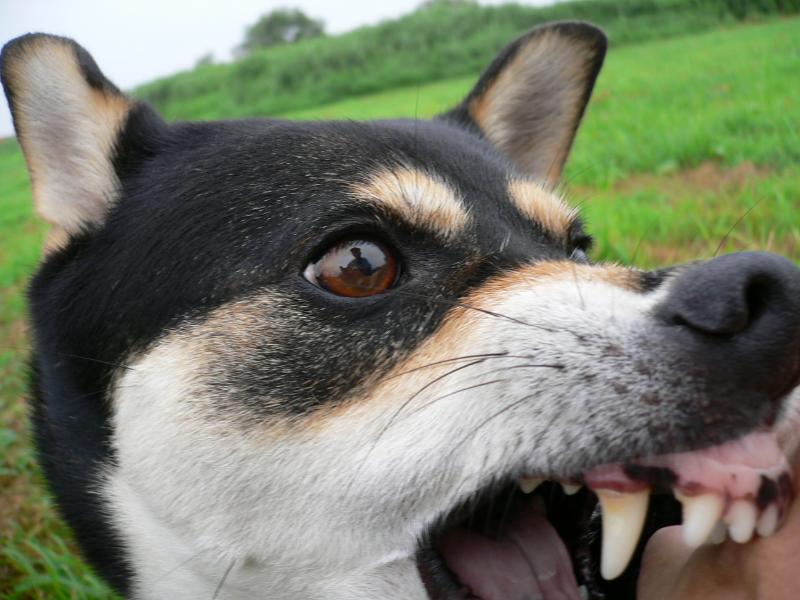 いたずらしたラリー君に噛み付くラリー姉さん |