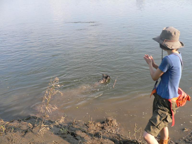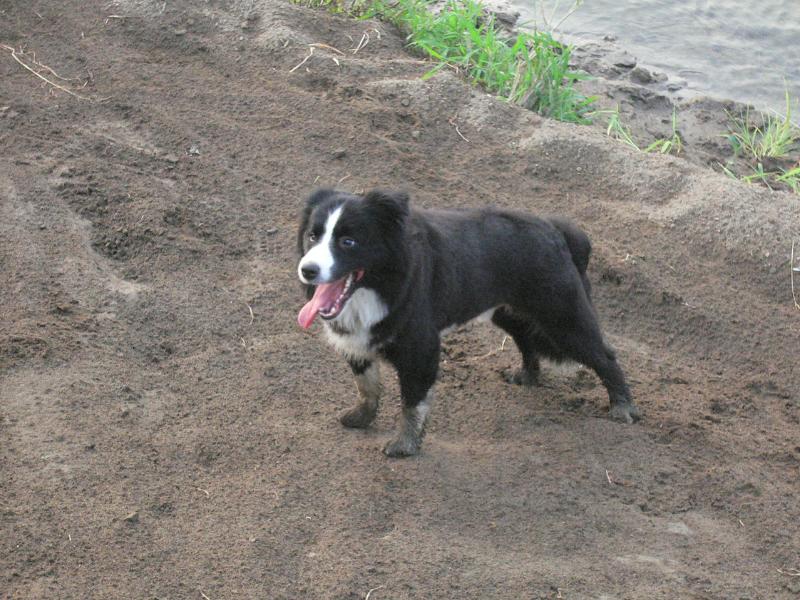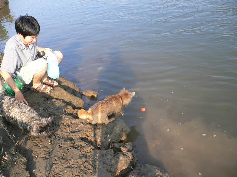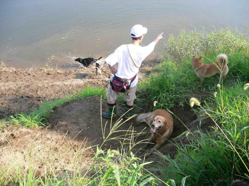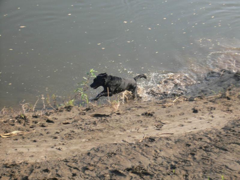 川で走り回るルース君の図 |