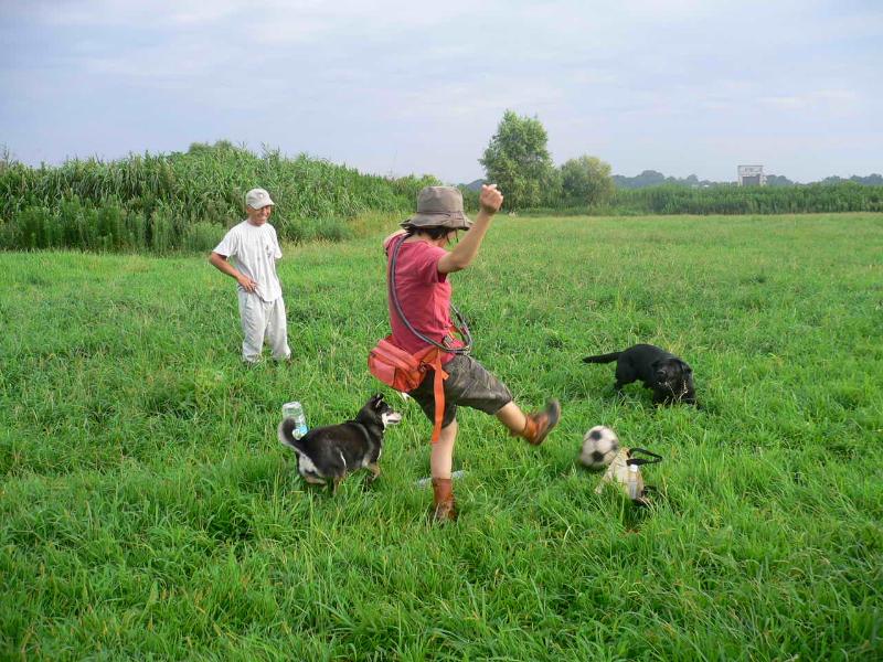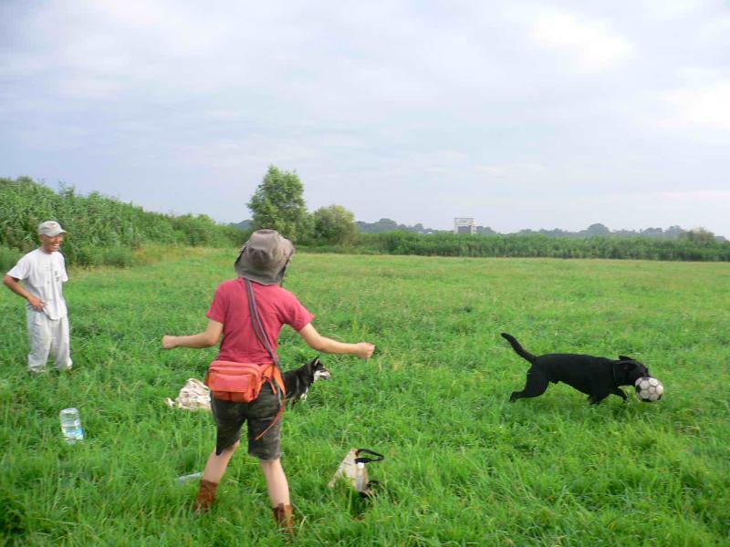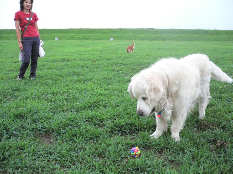 なかなかボールを取りにいこうとしないコバチ君 |