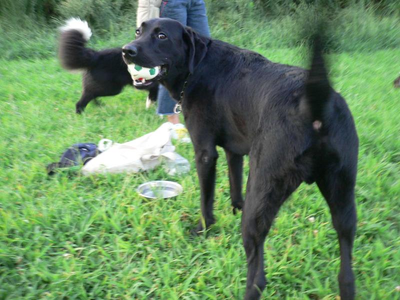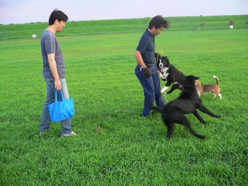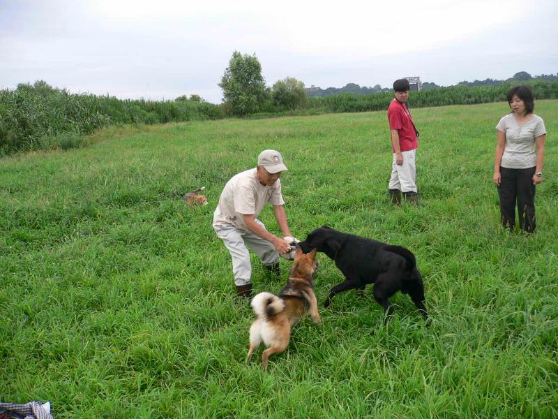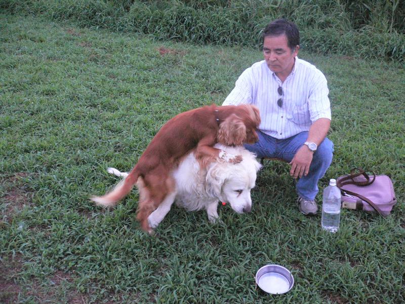 ボールを取り合うルース君とジョン君パパ |