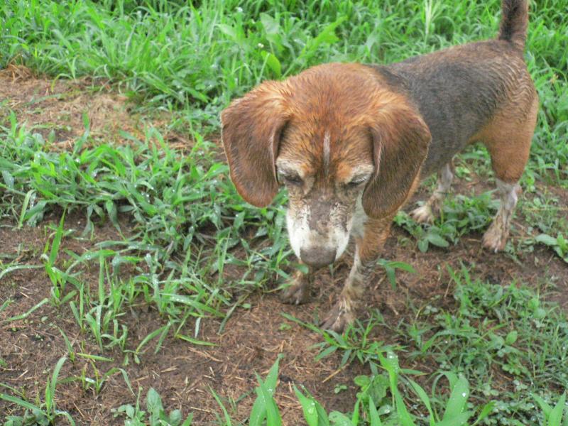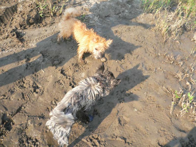 朝露と穴掘りでデロデロの図 |