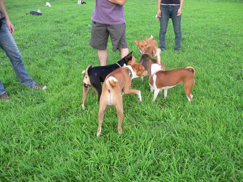 バセンジの皆さんに取り囲まれるきゃら |