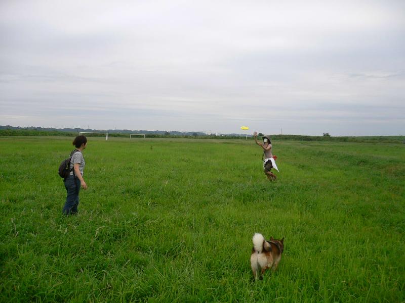 フリースビーに夢中のマル姉さんとウィル姉さん |