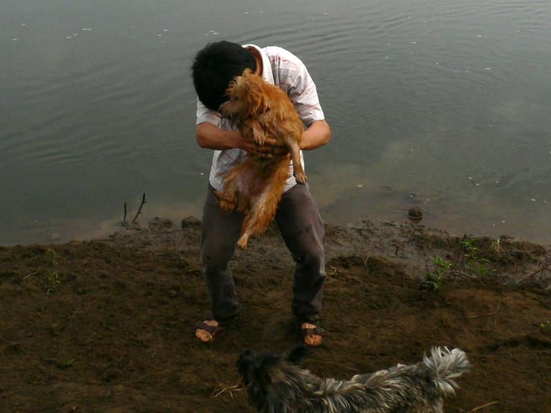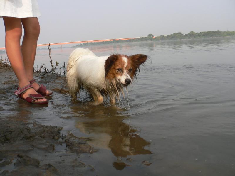 一週間ぶりの河原にはしゃぐウィル君 |