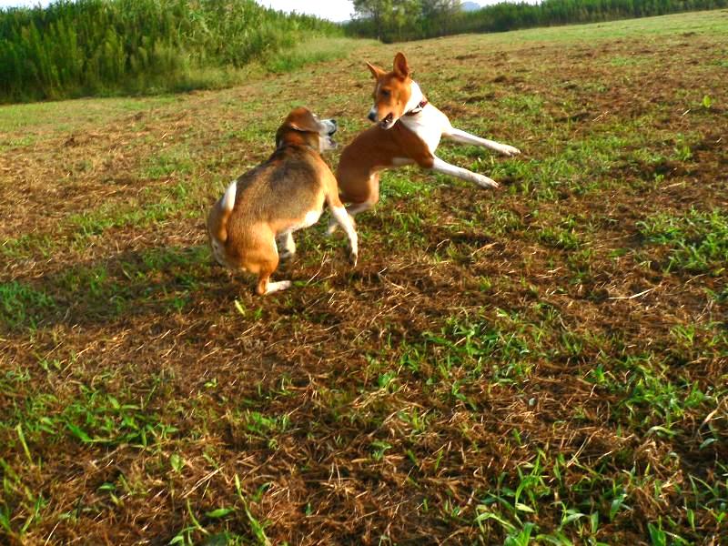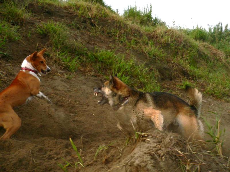 突如内輪もめ?じゃれ合うコバチとガッツァ君。 |