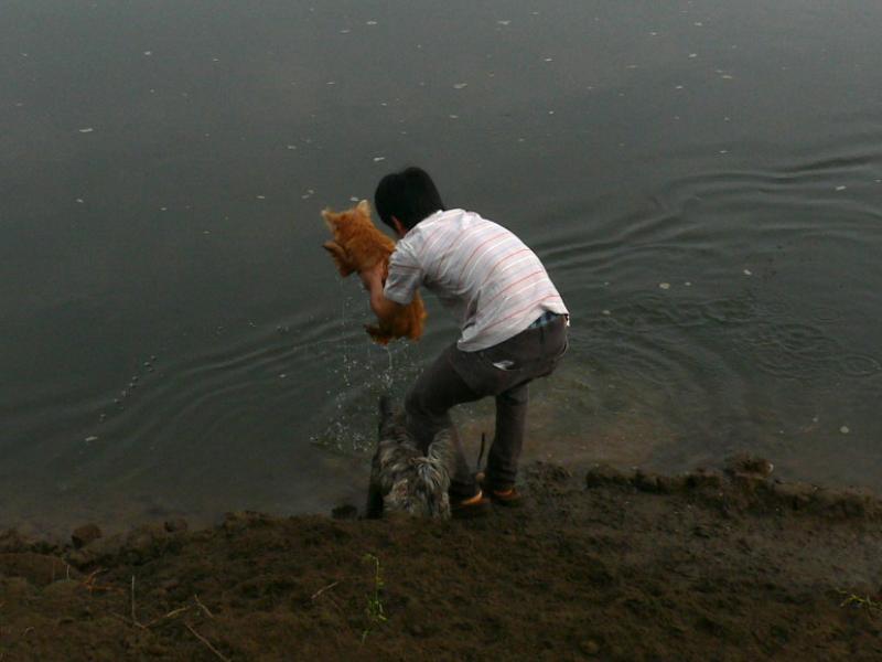 コバチ君を洗うお兄さんの図(汗)。 |