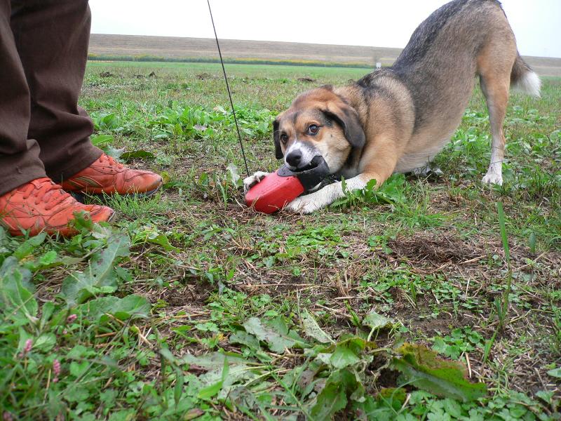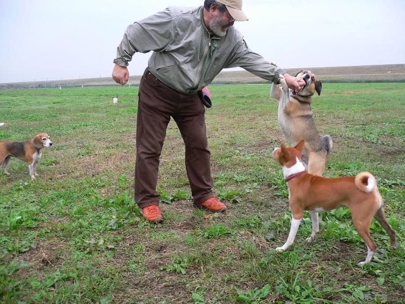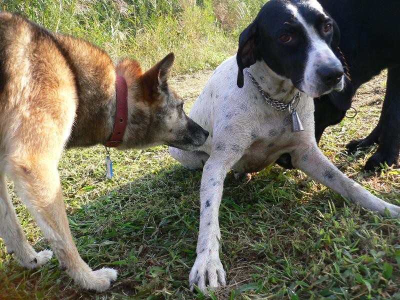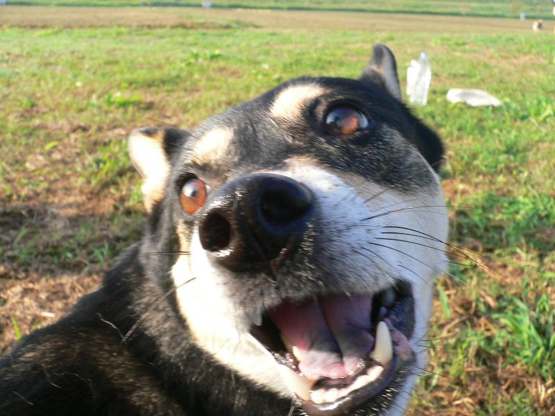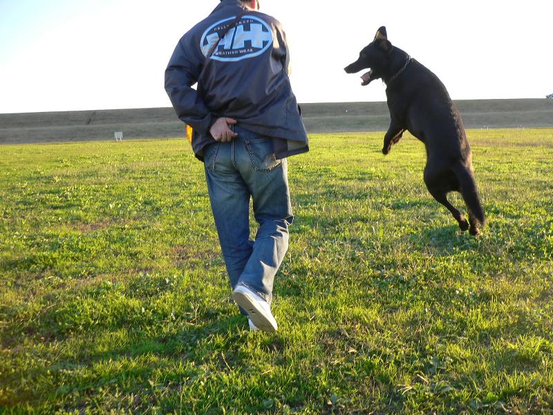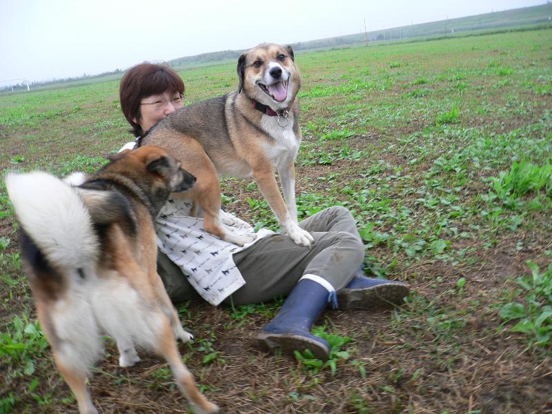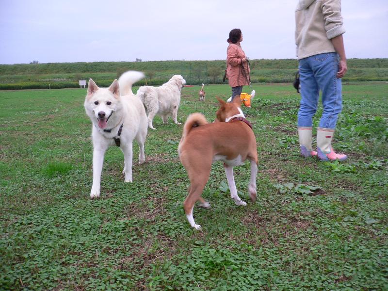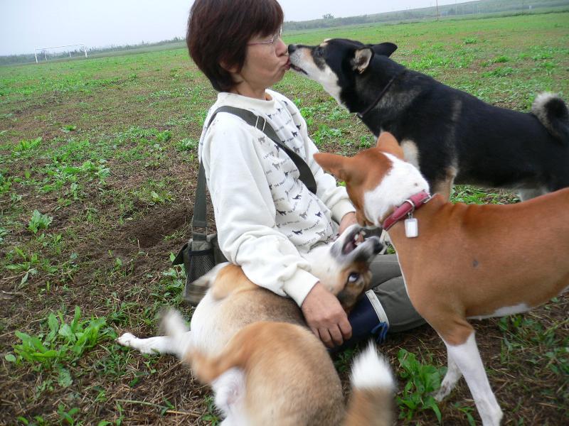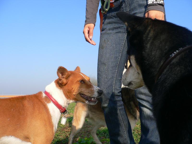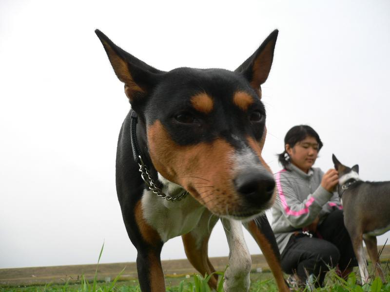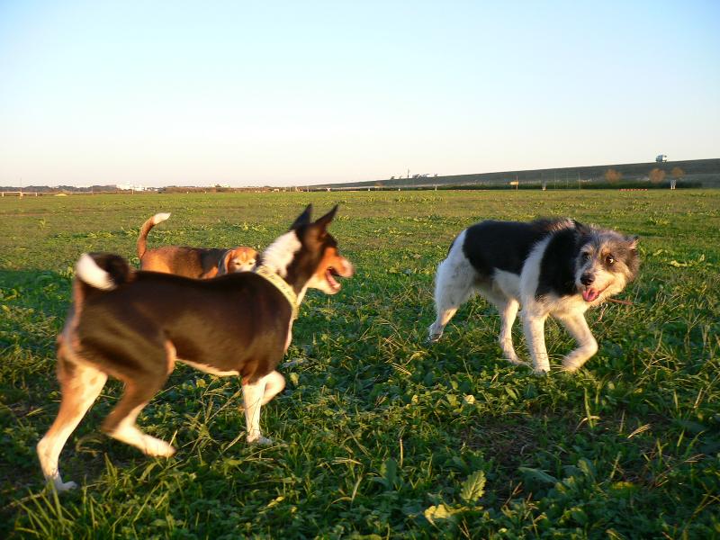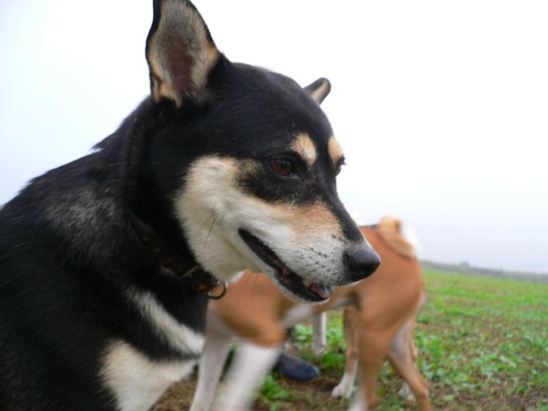 大吉君とじゃれる黒バセンジのルーク君。 |