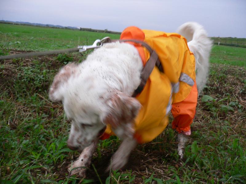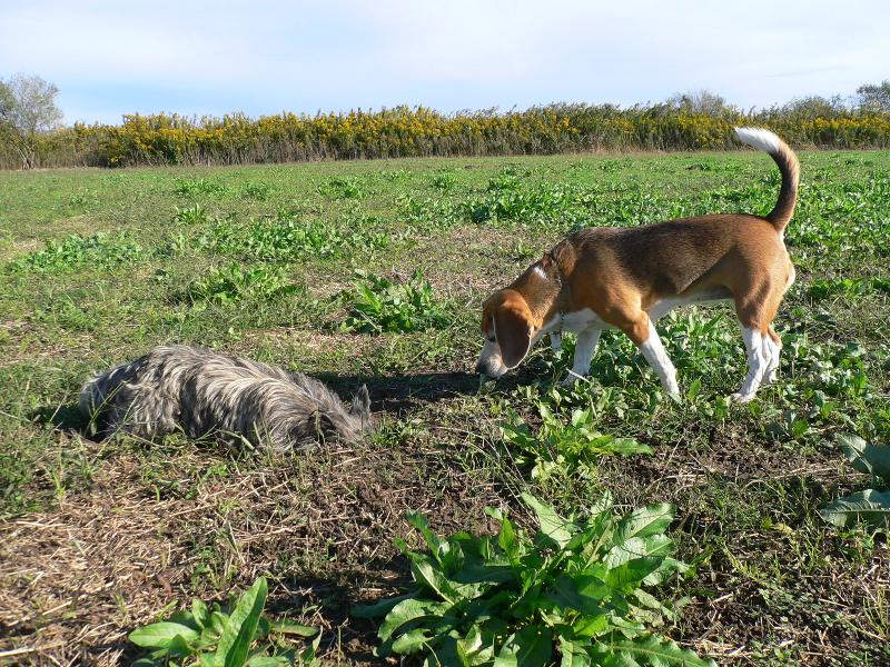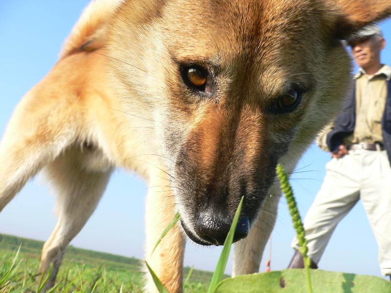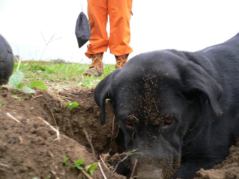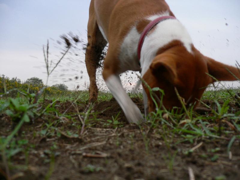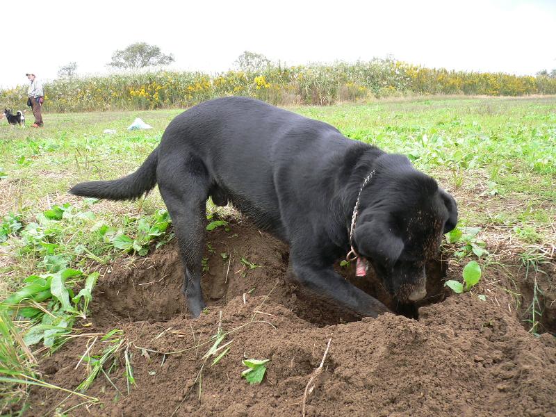 突然ガッツァくんも穴掘り。草と同化してます。 |