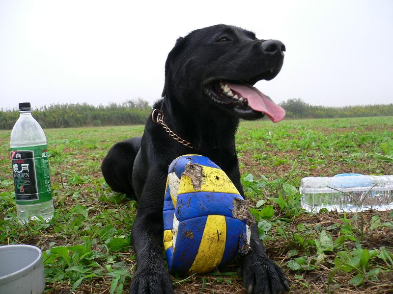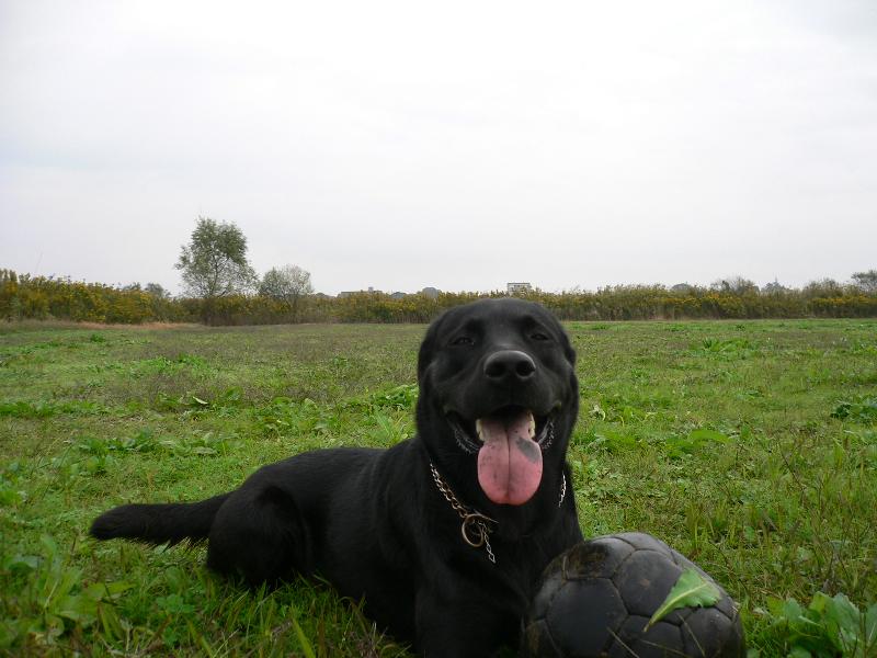 ルース君の大の気に入り?黒いサッカーボール。 |