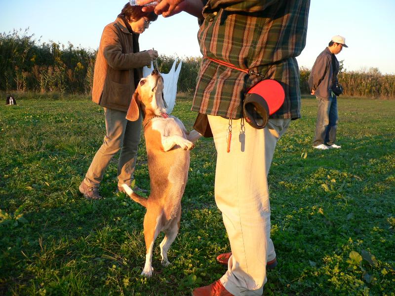 突然の人間たちのおやつに、立ち上がるきゃら。短足っ! |