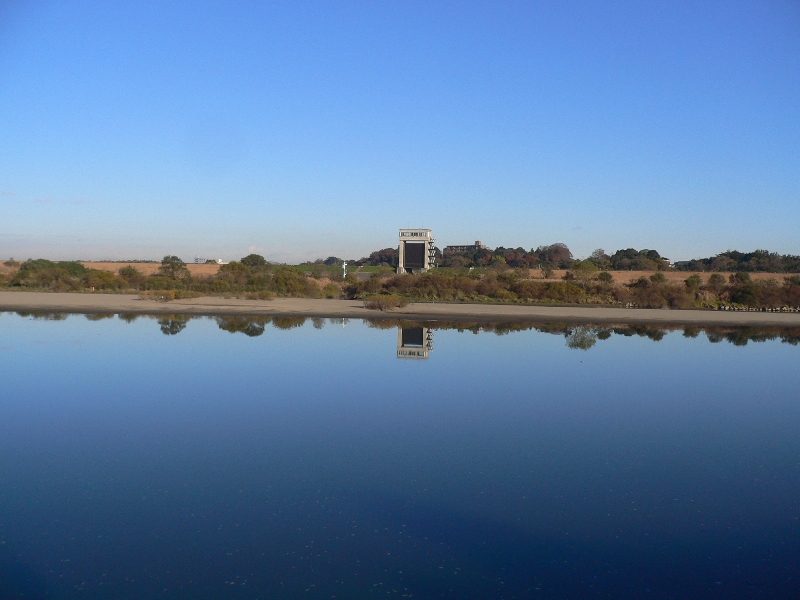 今日の川の水面は鏡のようでした。< |
