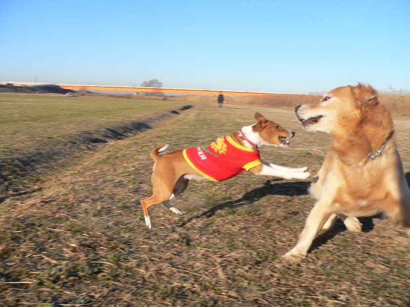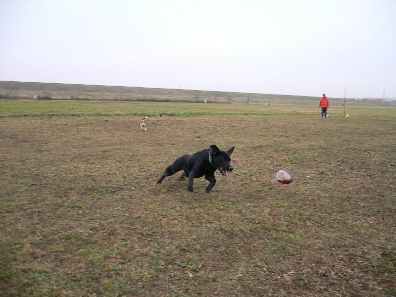 ラグビーボールを追いかけるボール"命"のルース君。迫力あります。 |