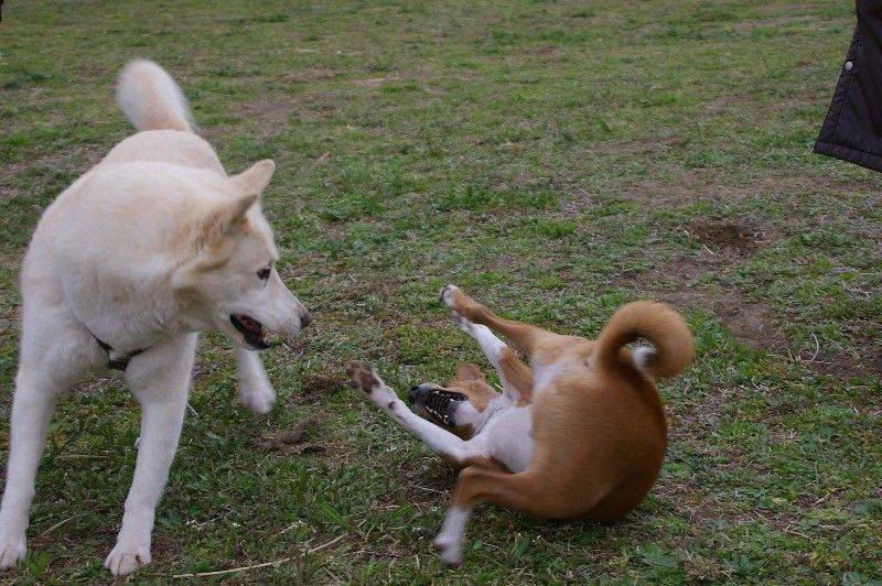 リリーちゃんとじゃれる大吉君。 |