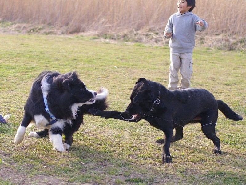 ラリヲ君とじゃれるガッツァ君。よだれが... |