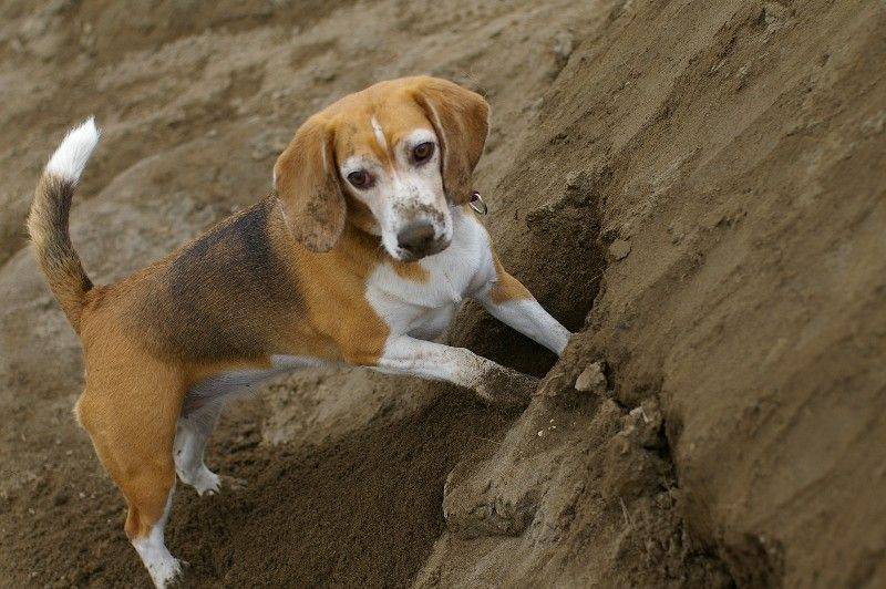 河岸で突然穴を掘り出すきゃら。 |