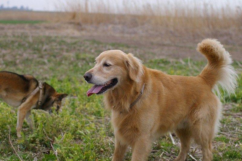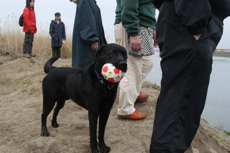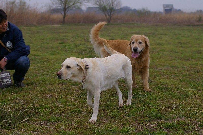 ゴールデンのハナちゃん河原デビュー。 |