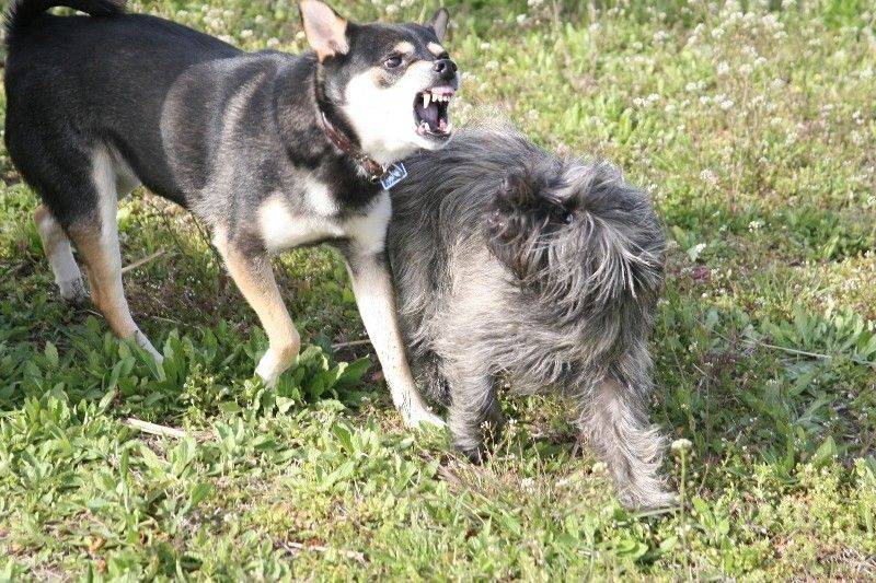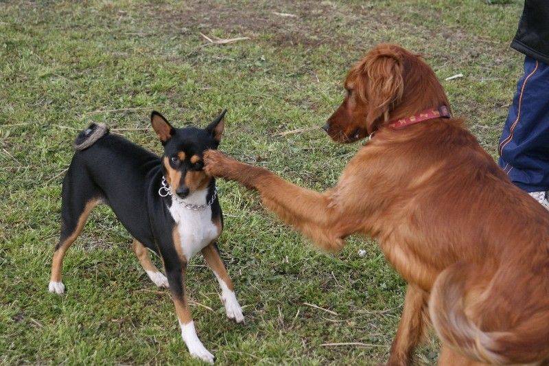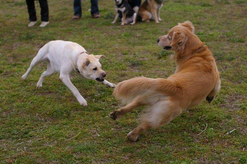 ロコちゃんに犬パンチを見舞うナナちゃん。 |