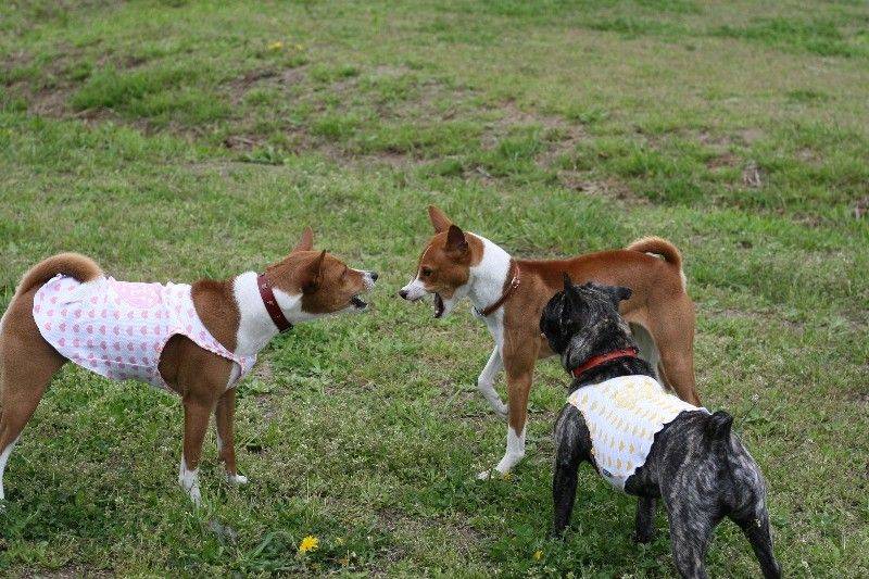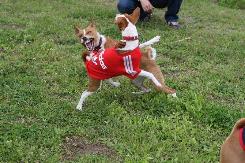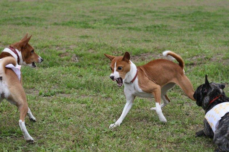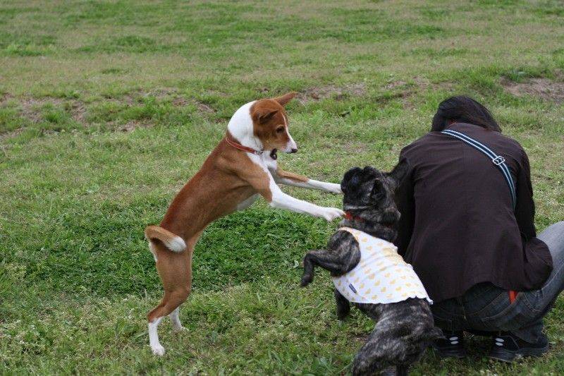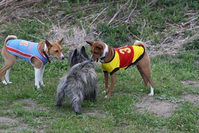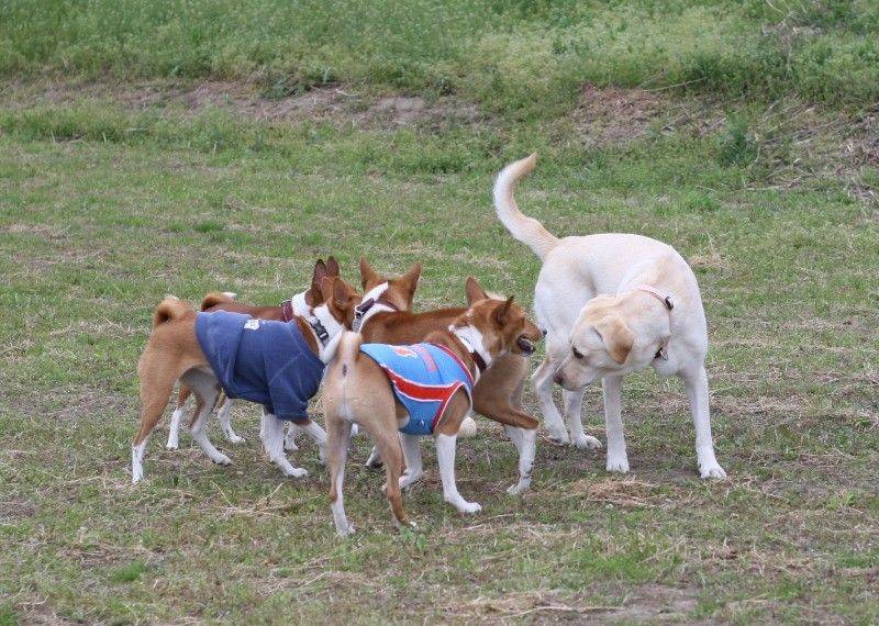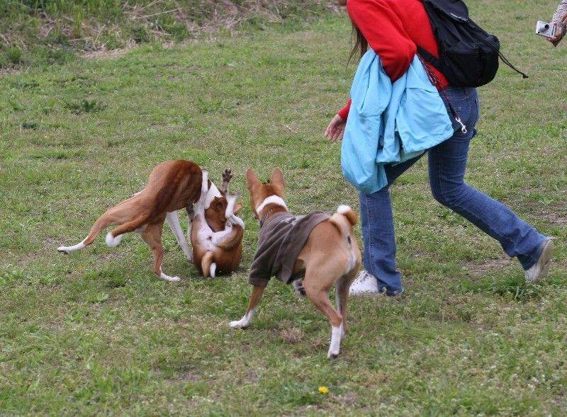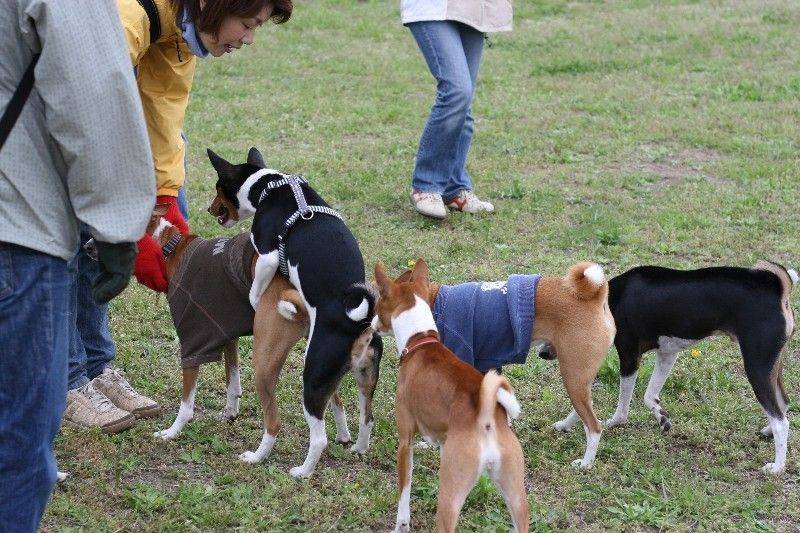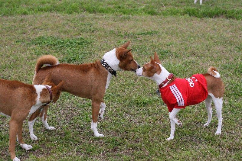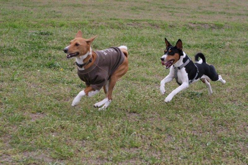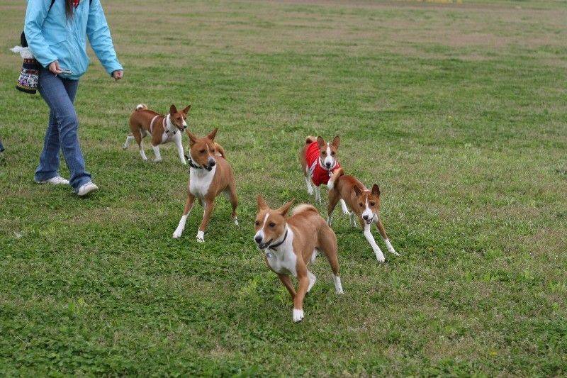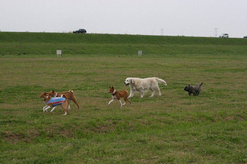走り回るバセンジの皆さん。 |