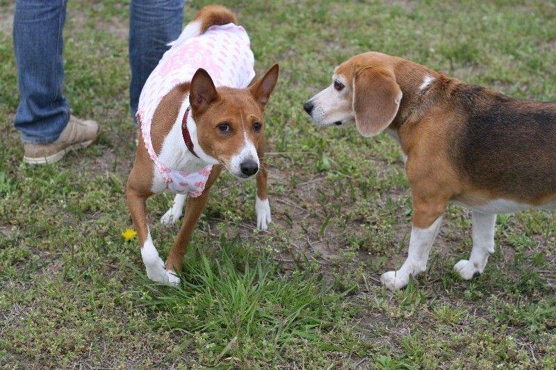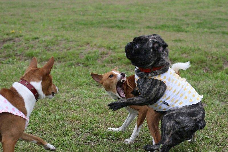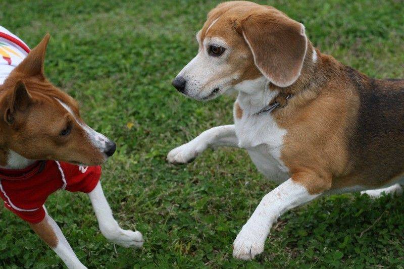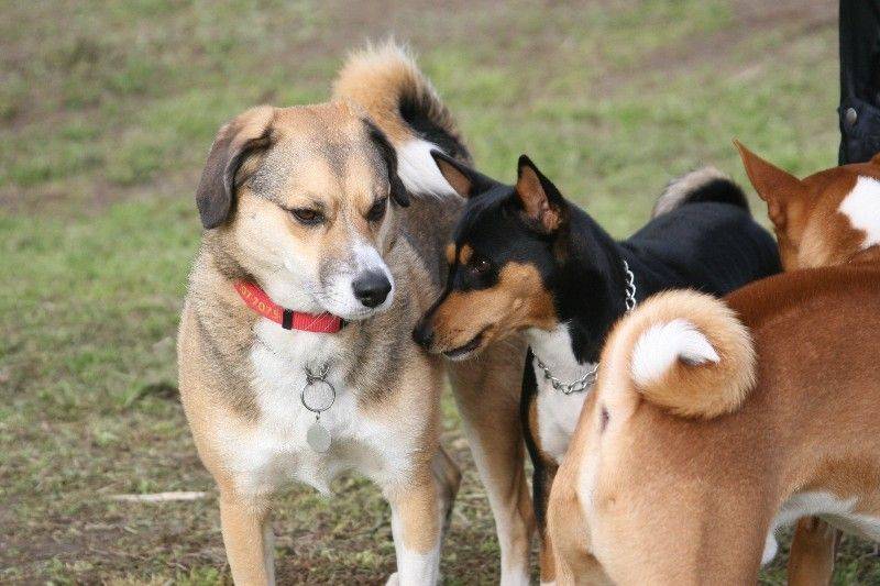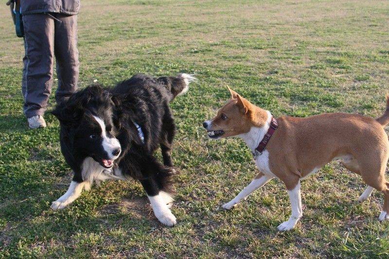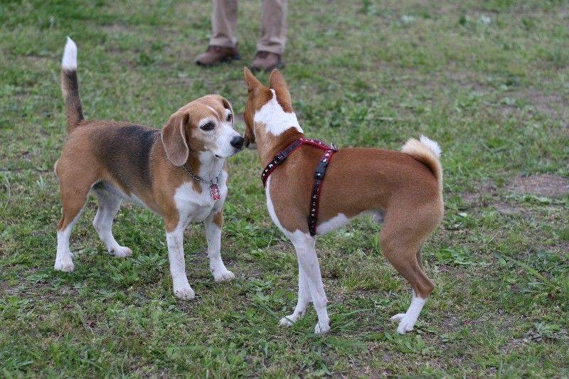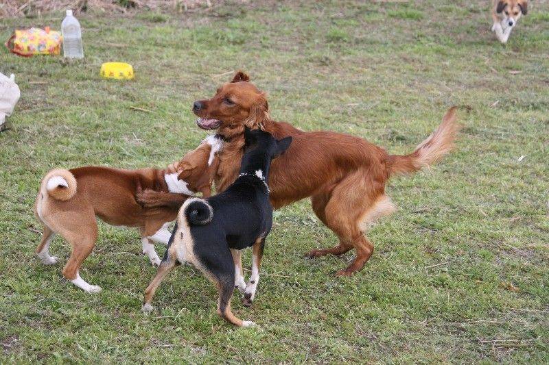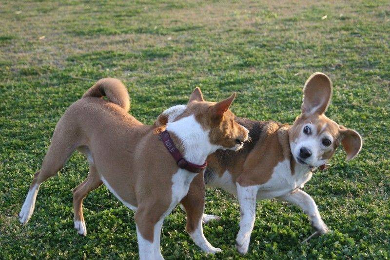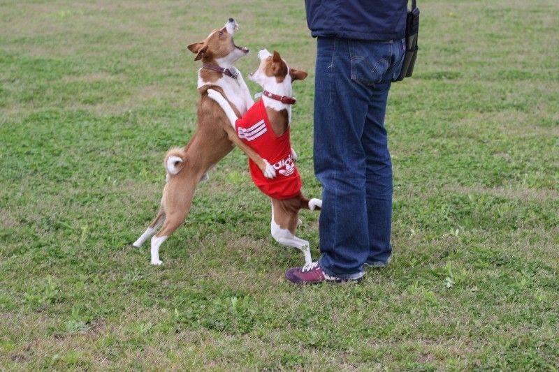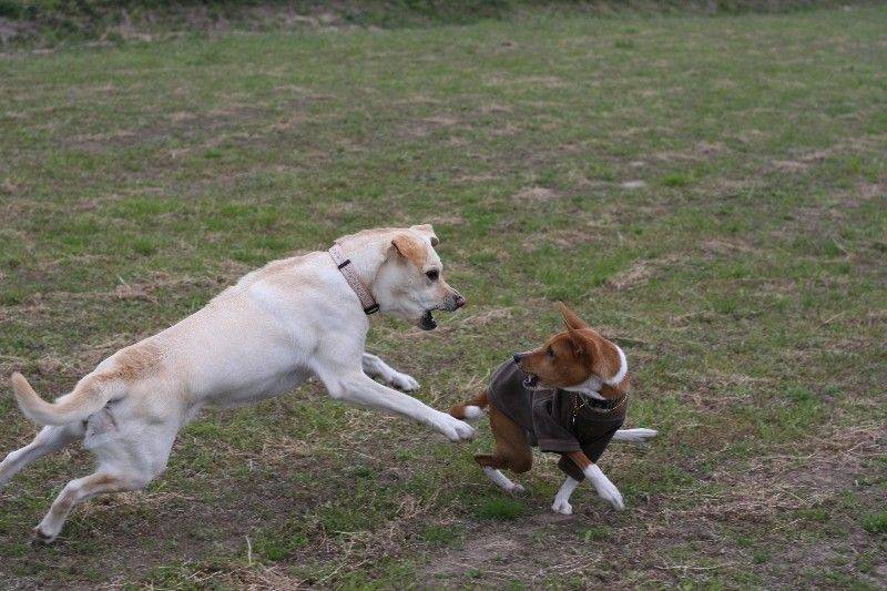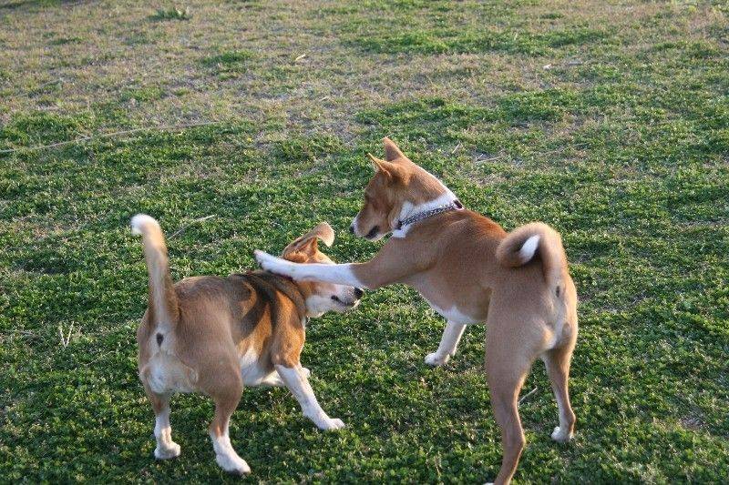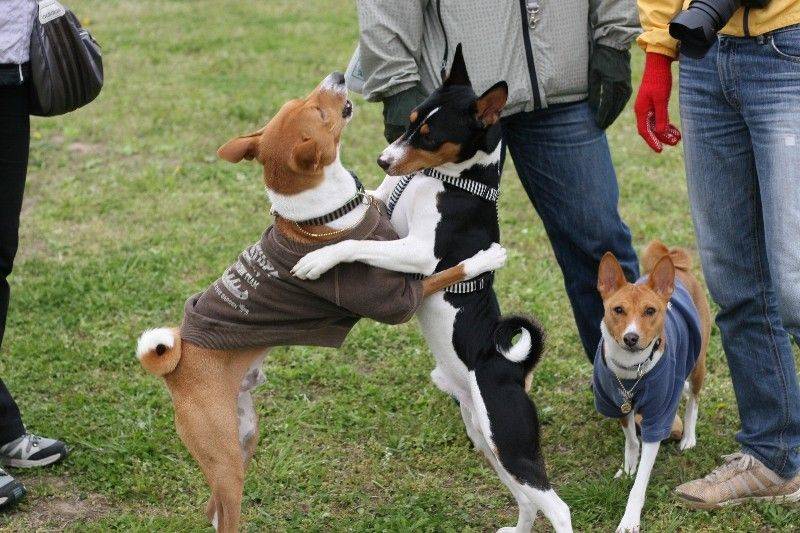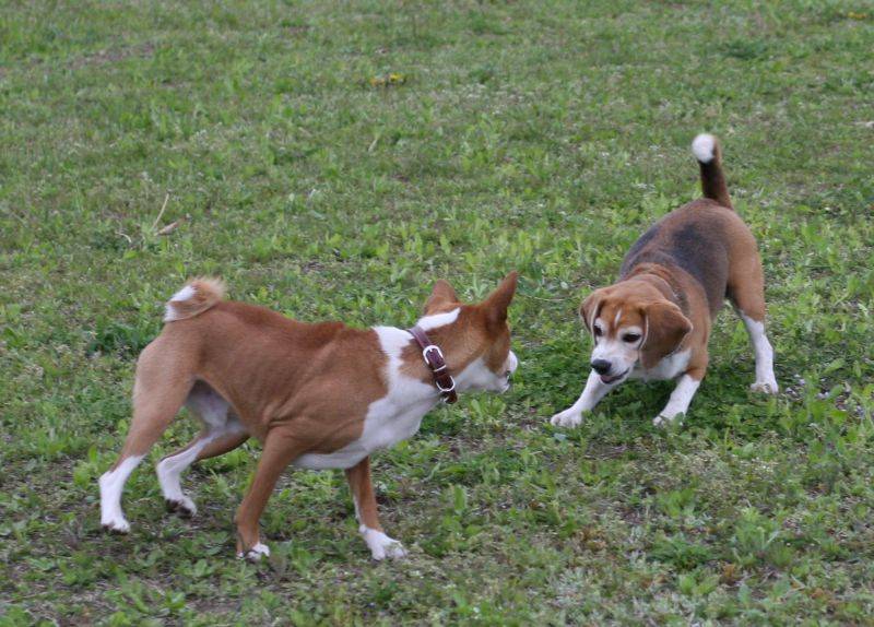 走り回るバセンジの皆さん。 |