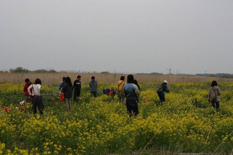 菜の花を堪能する皆さん。 |