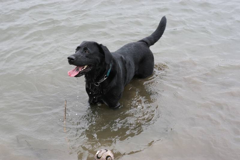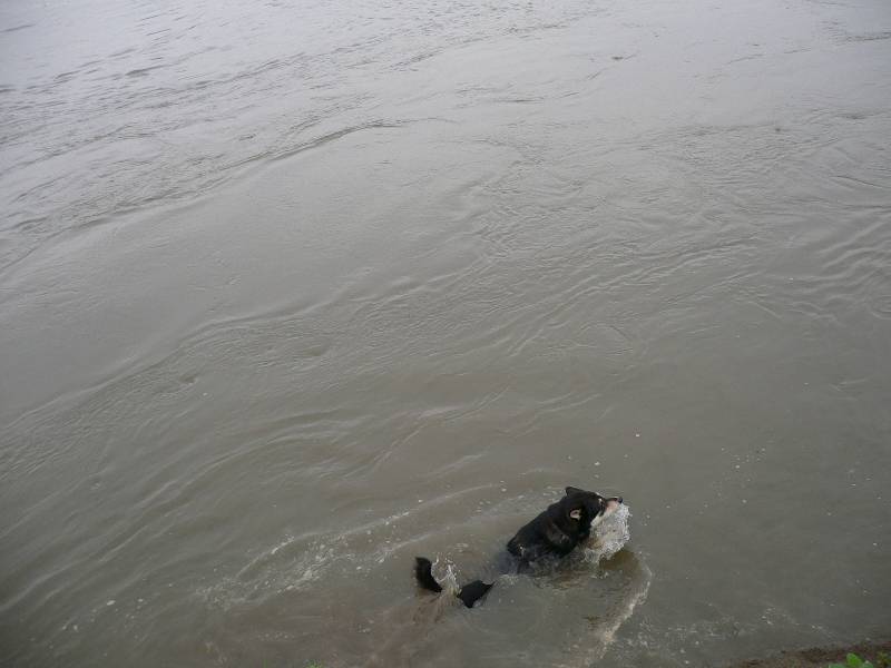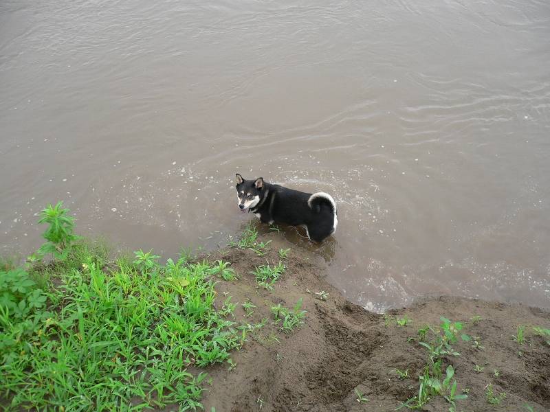 川の中でルース君ご機嫌 |