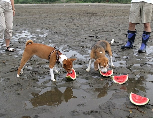 ビーチで遊んでいるとスイカを発見!皆でおいしくいただきました。 |