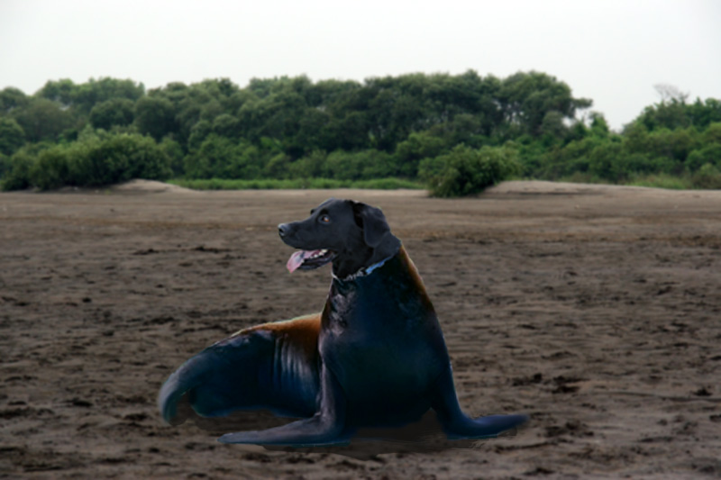びしょ濡れになったサーフ君を優しく舐めるロコちゃん |