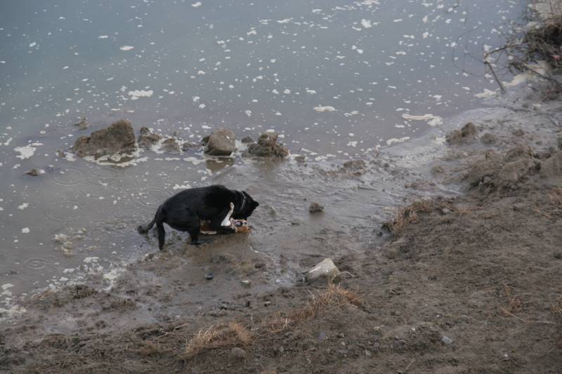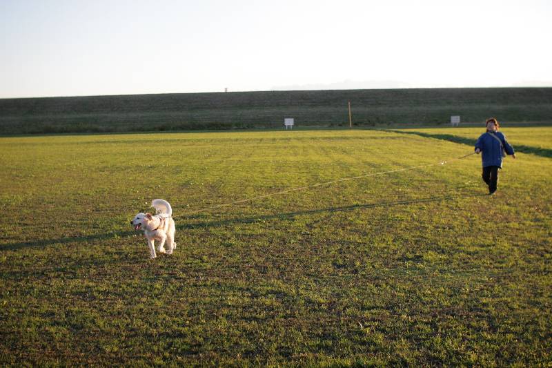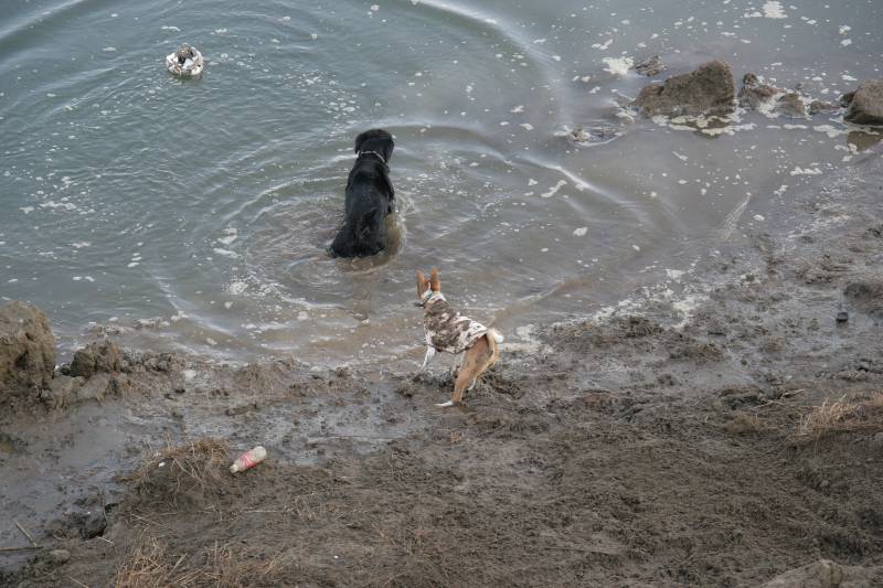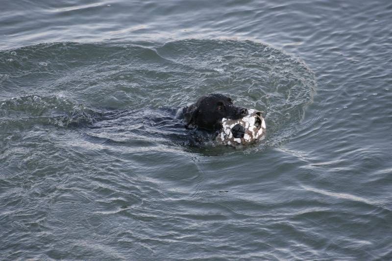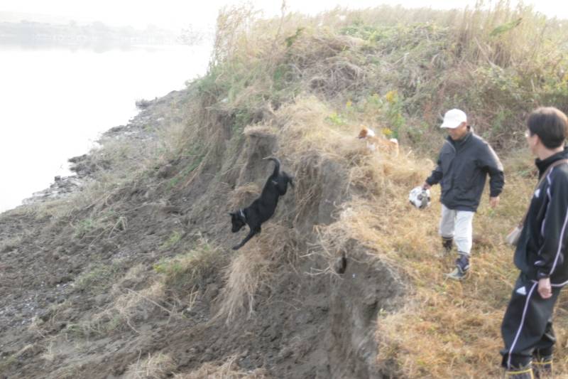 水に飛び込むルース君を冷めた目で見るマルさん |