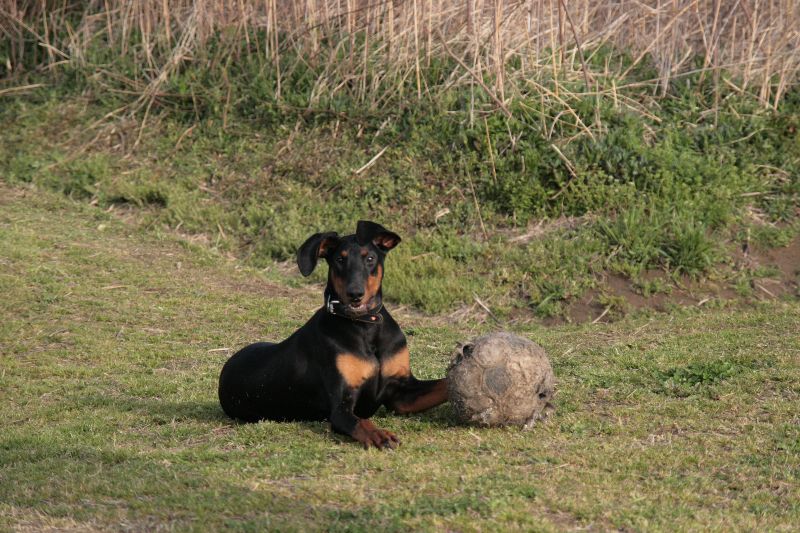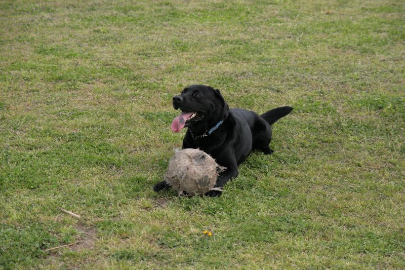 お気に入りのボールを前に得意満面のルース君 |