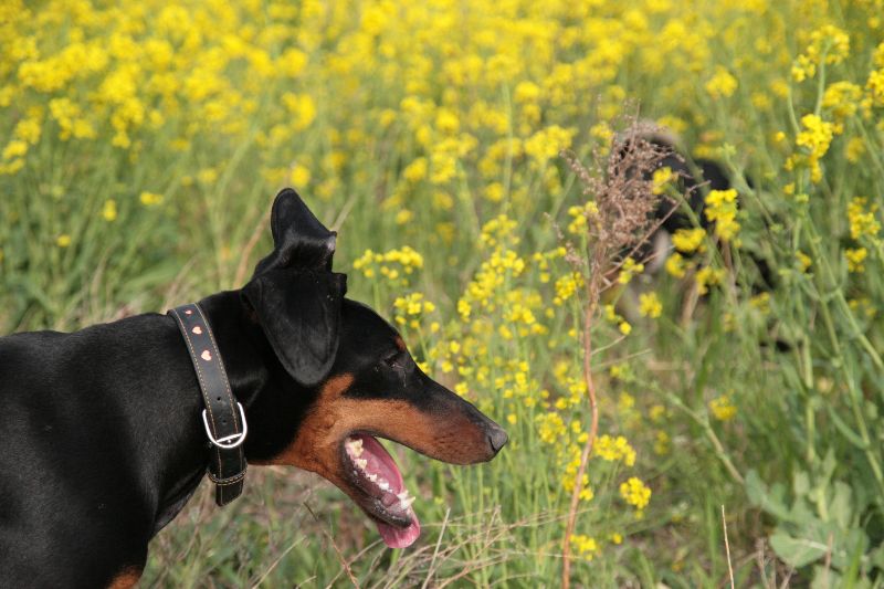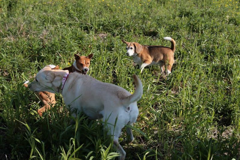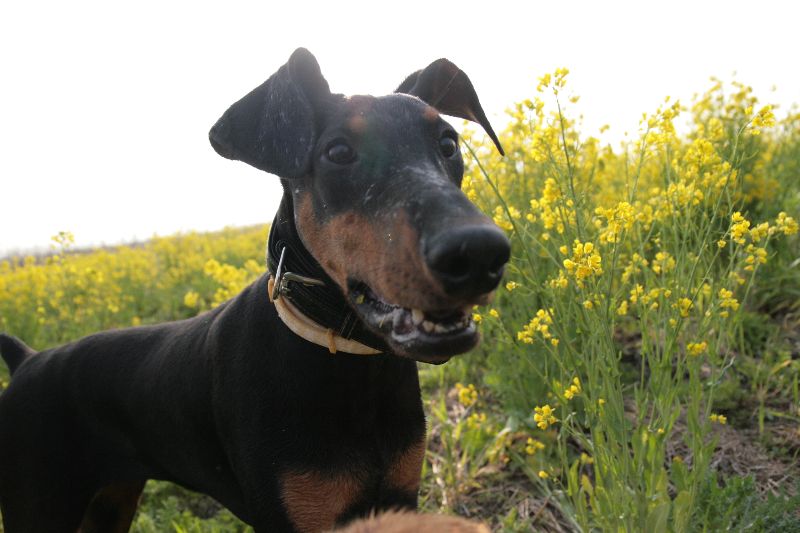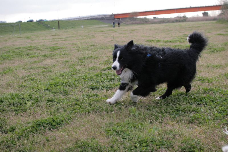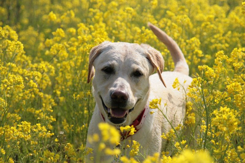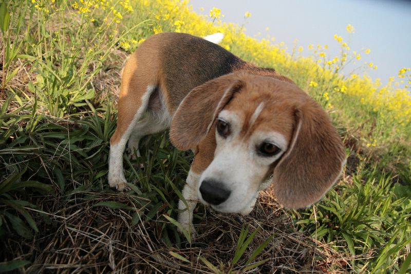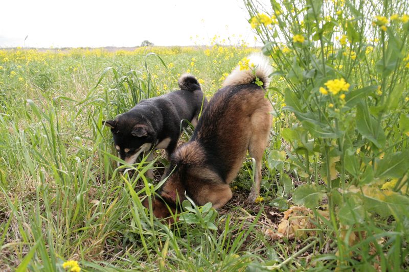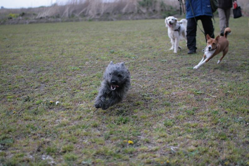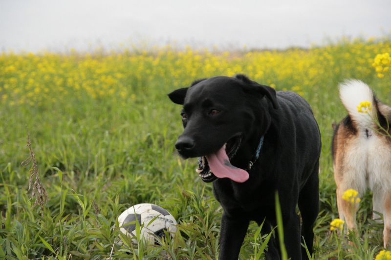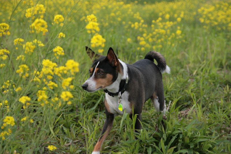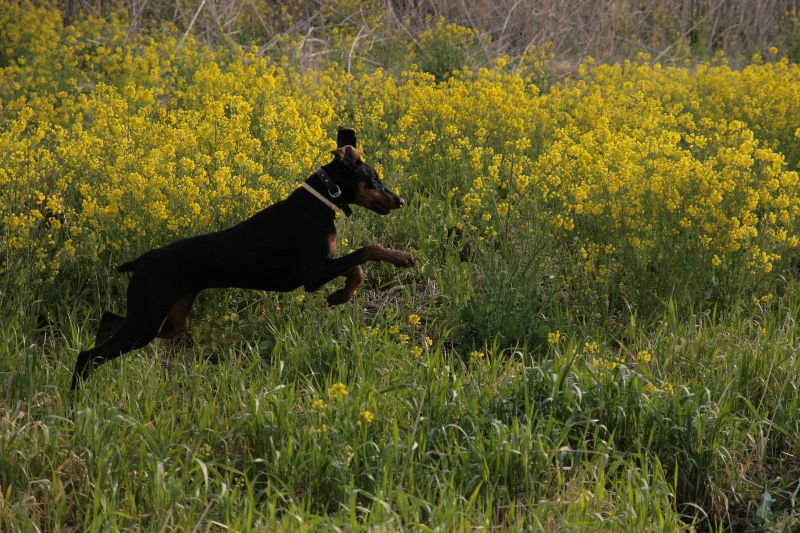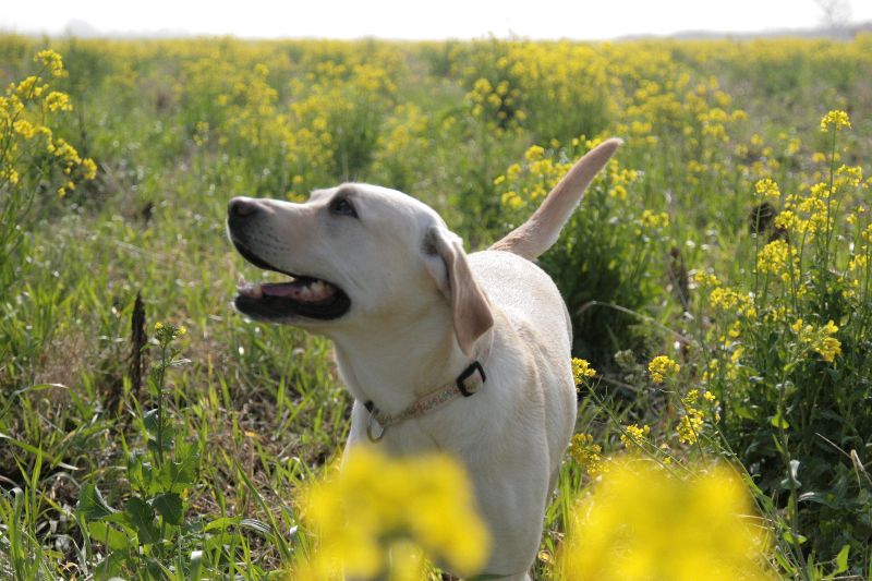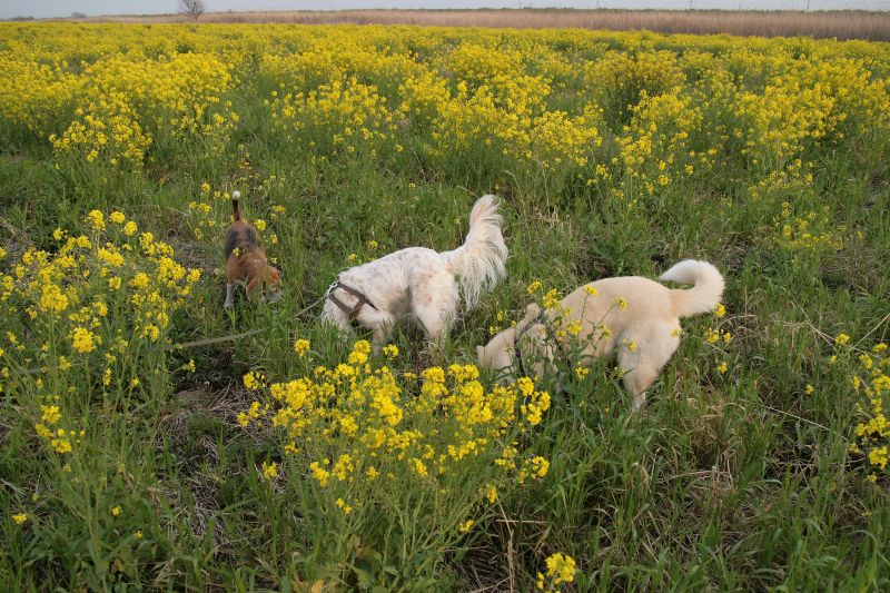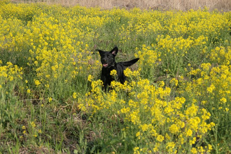 菜の花畑を激走するベルちゃん |