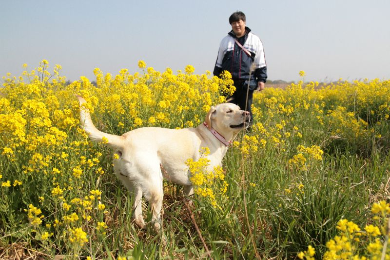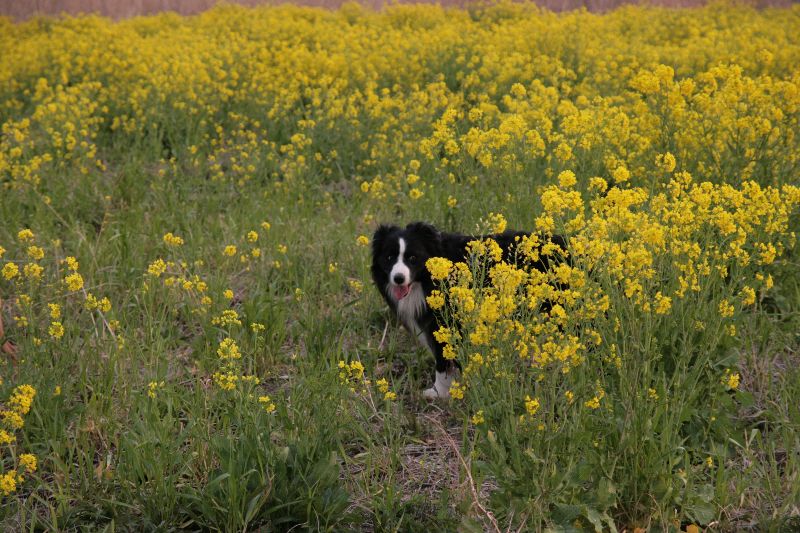 菜の花畑とソラちゃん |