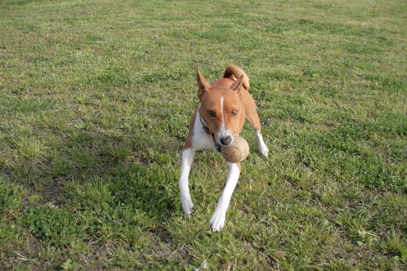 ルース君のボールを手にポーズするベルちゃん |