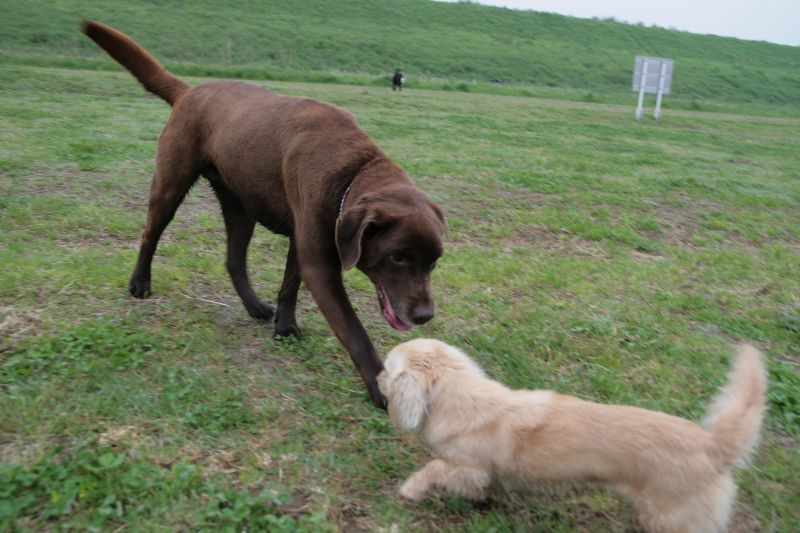 ハナちゃんとコバチさんにガウガウ発生!ちょっと遠すぎ... |