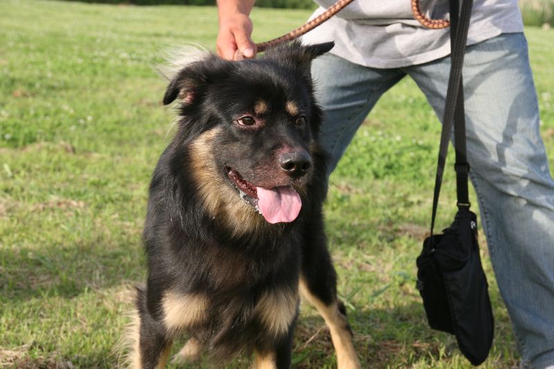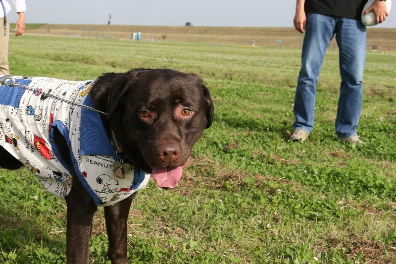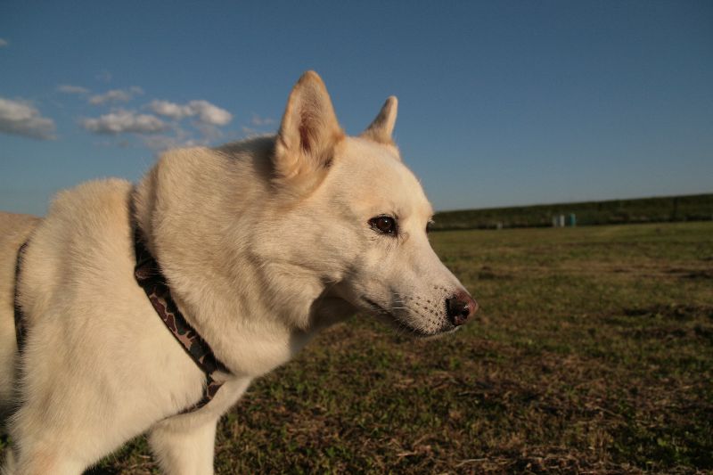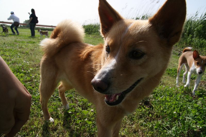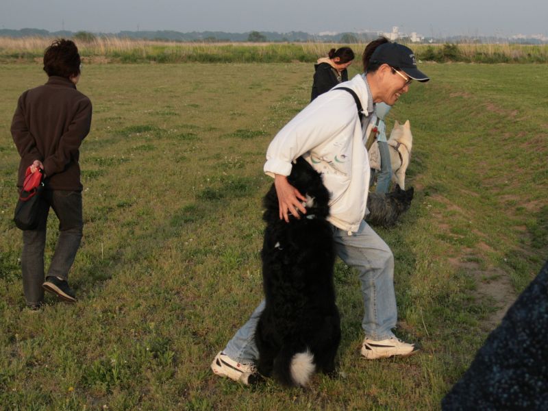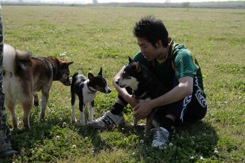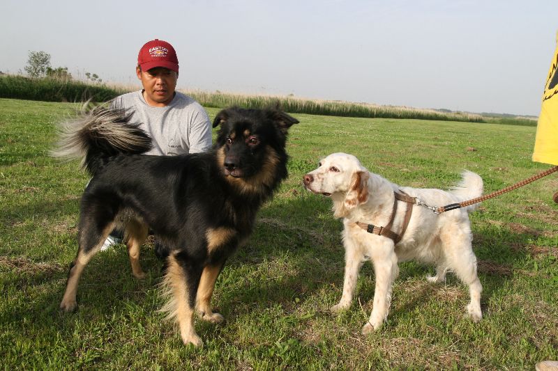 カラジ君とじゃれるきゃら。青空が気持ちいい! |