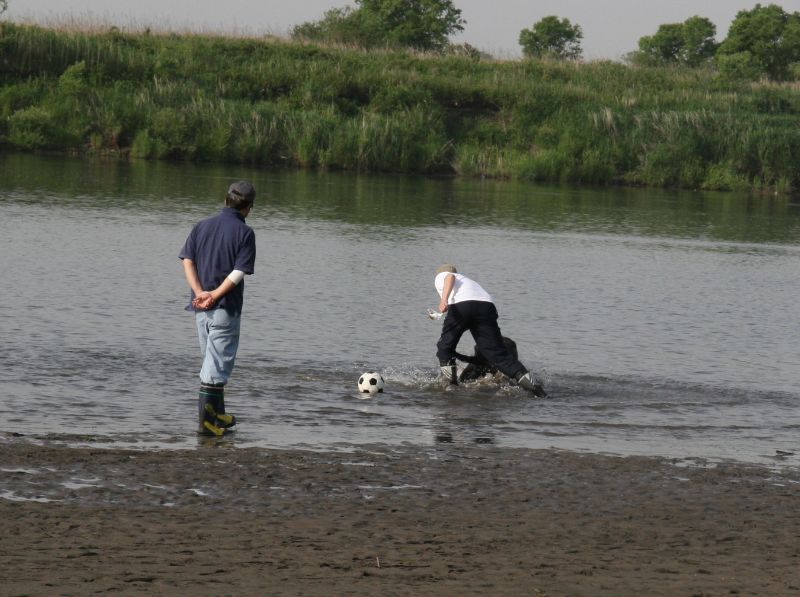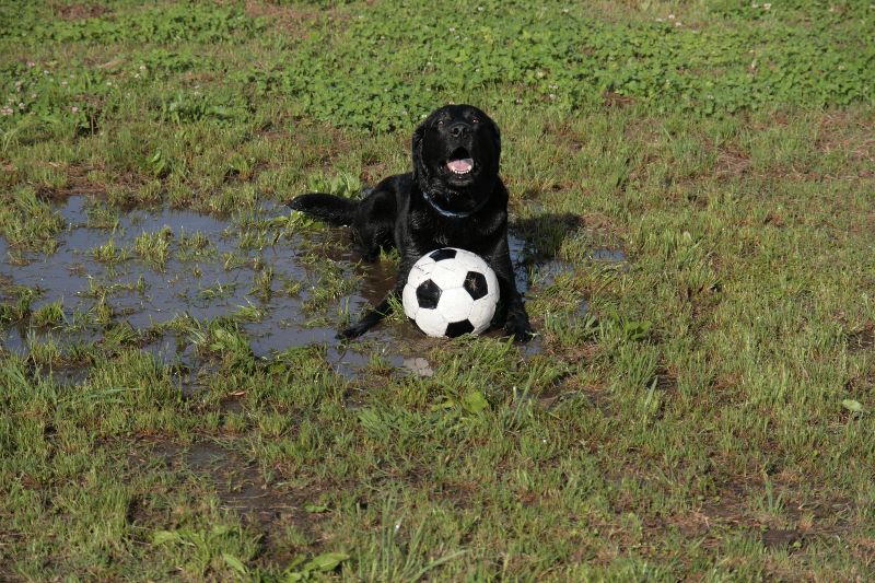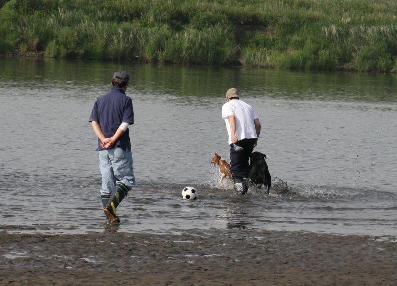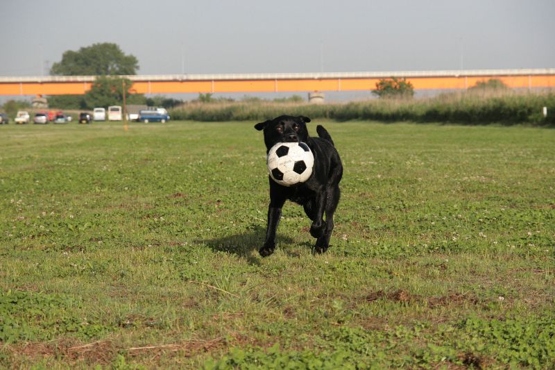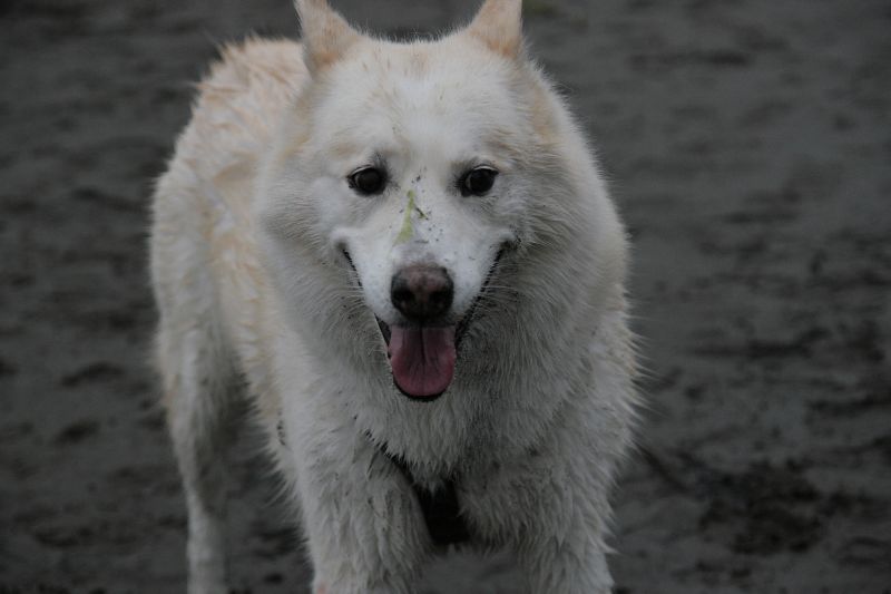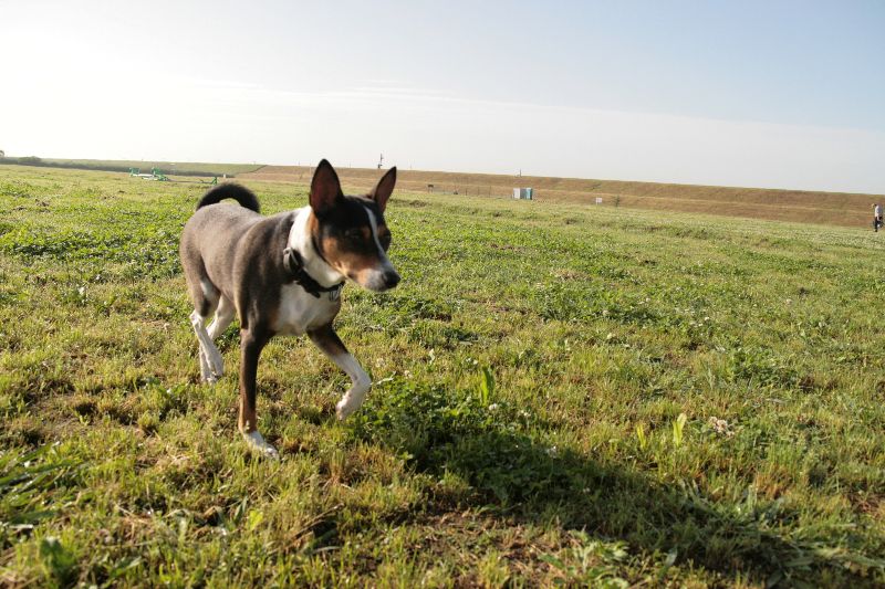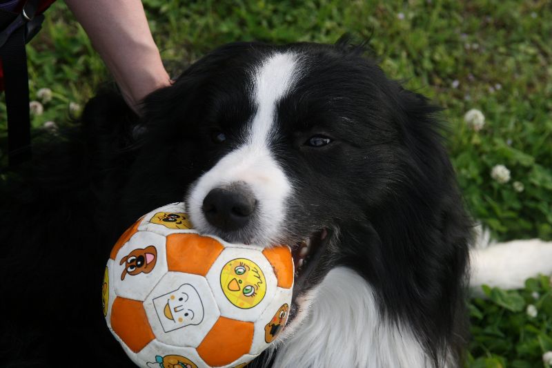 カラジ君とじゃれるきゃら。青空が気持ちいい! |
