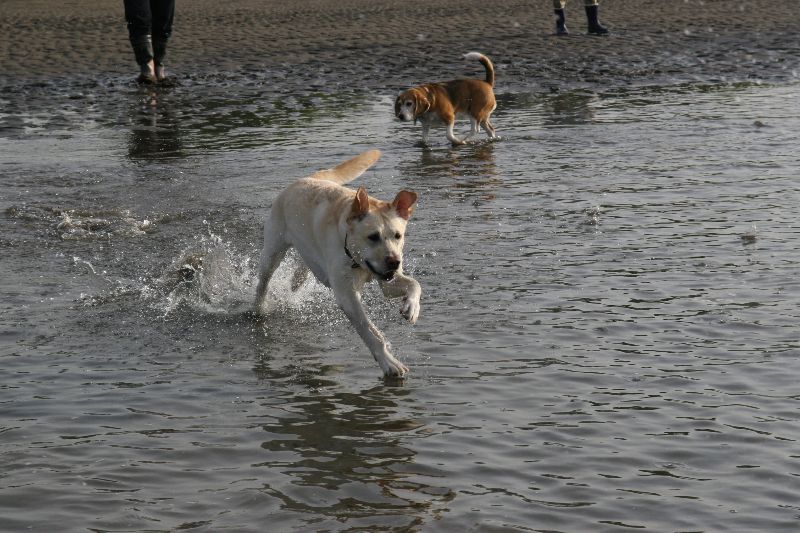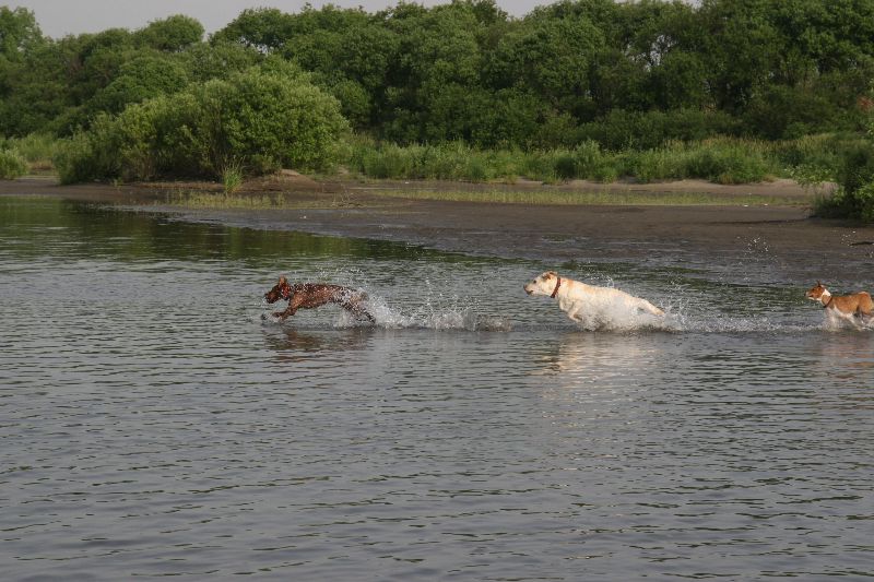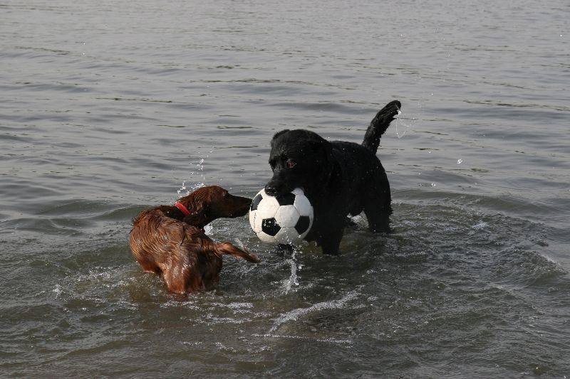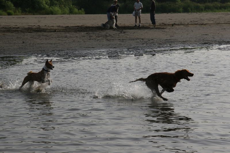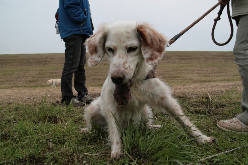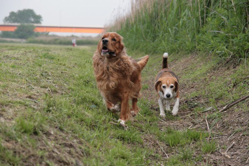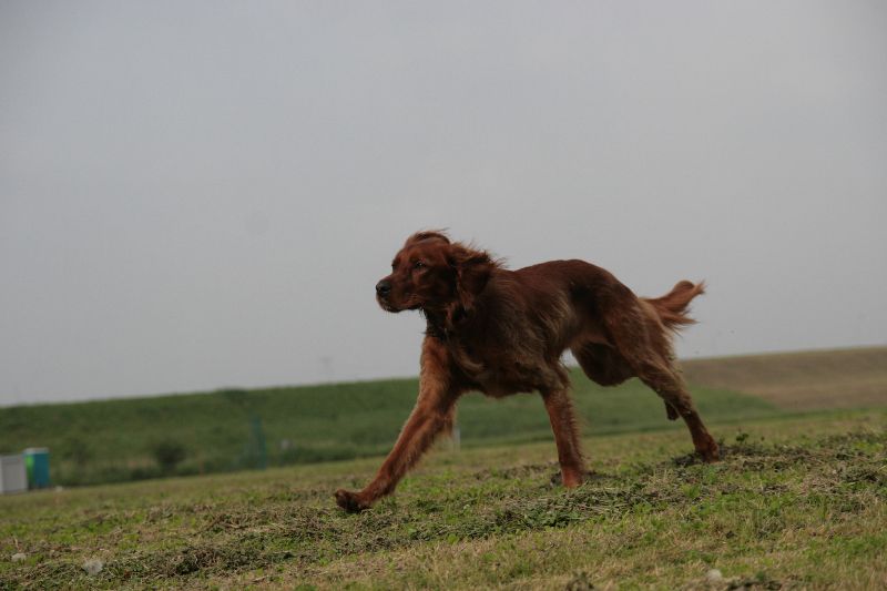 アイリッシュセターのリリーさんと走るカラジ君 |