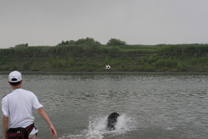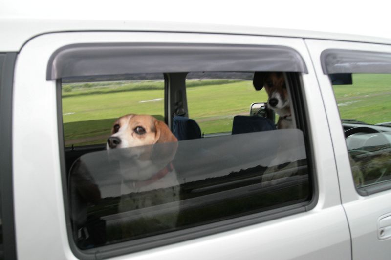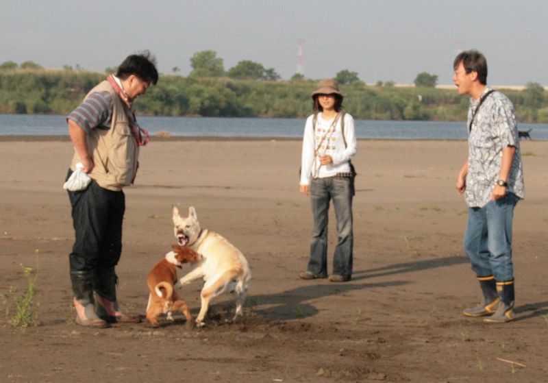 どういうわけか麦ちゃんの車に乗り込む大吉君 |