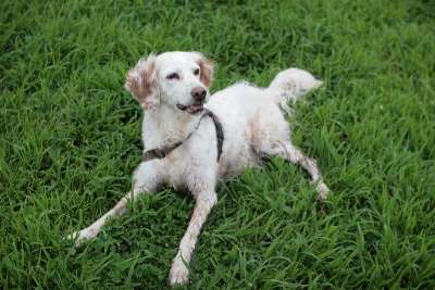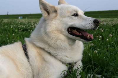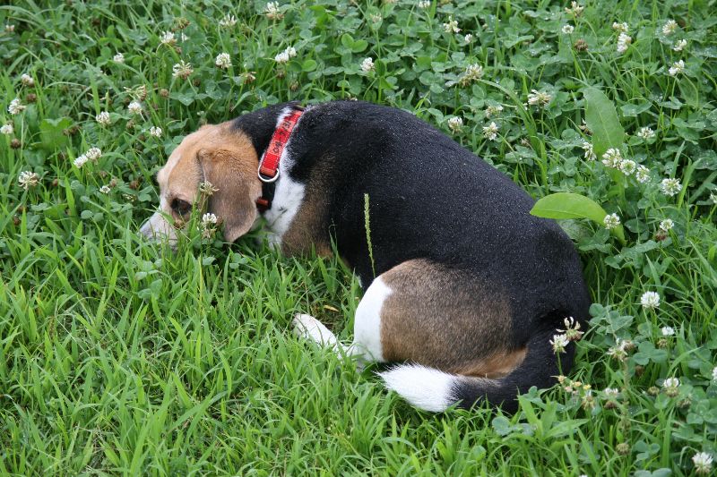 7月14日 小雨が降ってきた中、ふて寝?をする麦ちゃん |