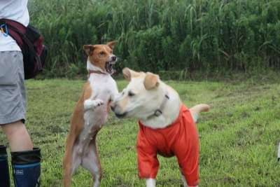7月7日 太郎くんとカラジ君にガウガウが発生! |